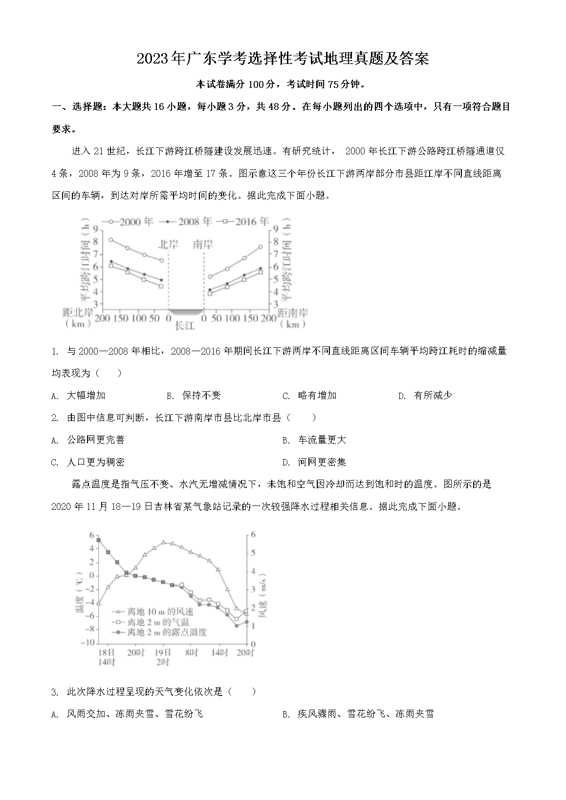 2023年广东学考选择性考试地理真题及答案(Word版)08-17