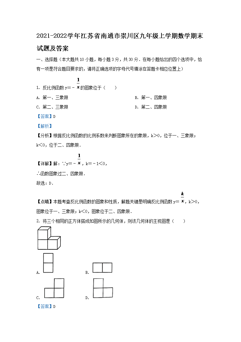 2021-2022学年江苏省南通市崇川区九年级上学期数学期末试题及答案(Word版)09-27