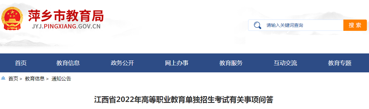 相关文件:关于印发《江西省2022年高等职业教育单独招生实施办法》的通知