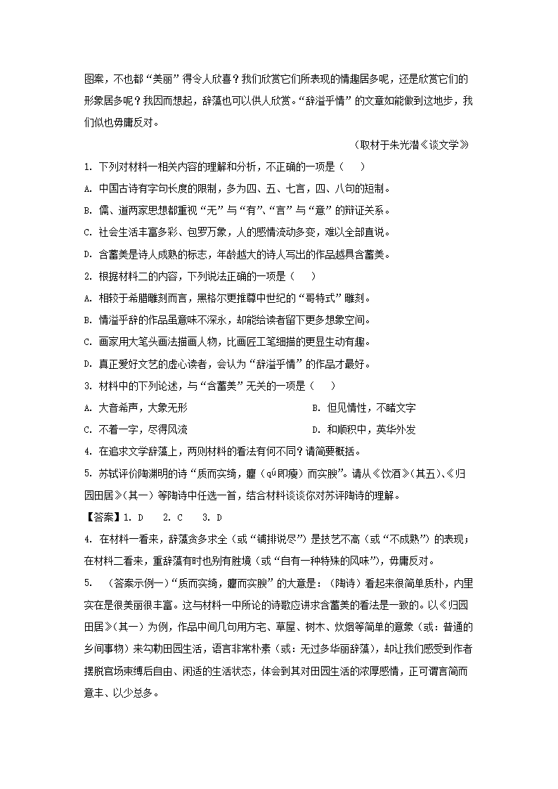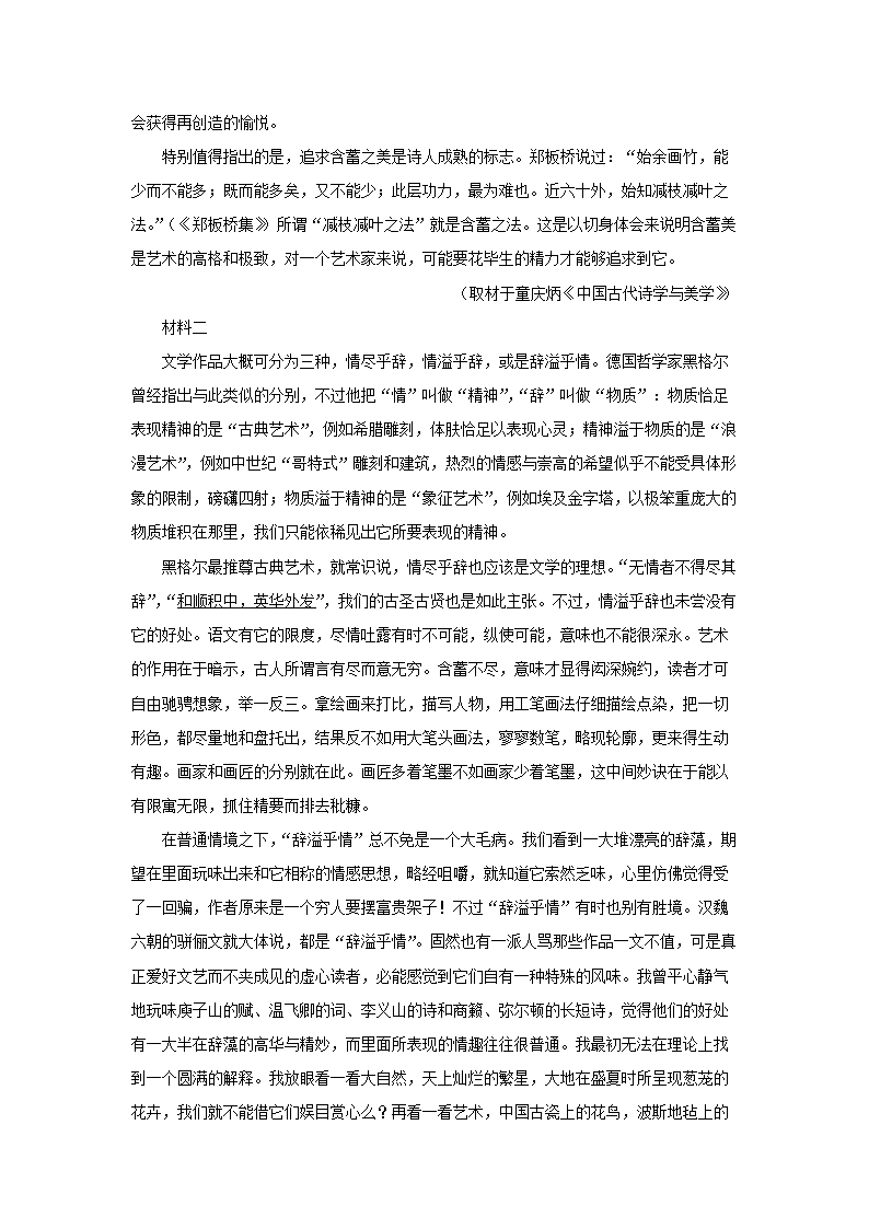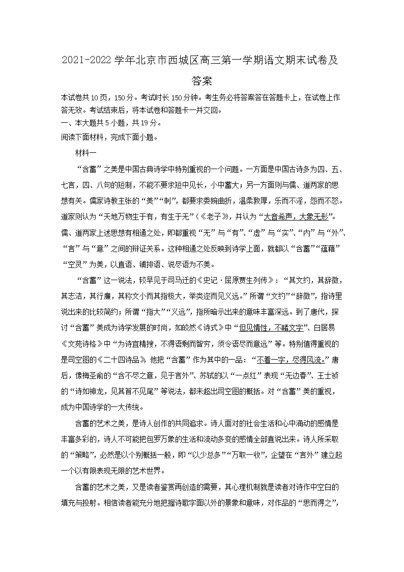2021-2022学年北京市西城区高三第一学期语文期末试卷及答案(Word版)09-20