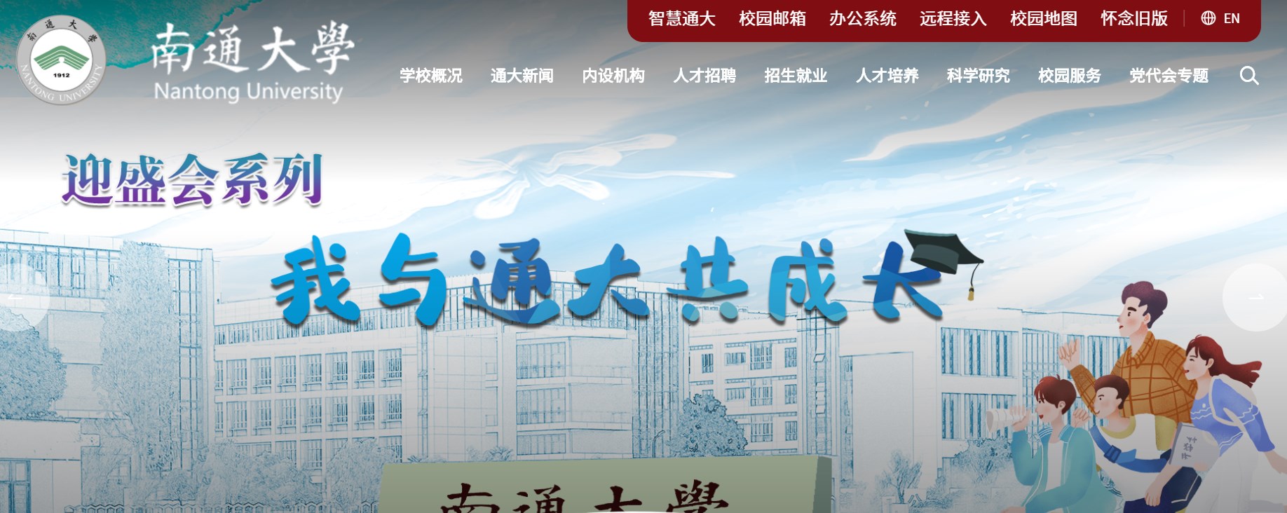 【#教育# #南通大学:https://www.ntu.edu.cn#】南通大学(Nantong University),简称“通大”,位于江苏省南通市,学校是江苏省人民政府和交通运输部共建的综合性大学,江苏高水平大学建设高峰计划B类建设高校,国家“卓越医生教育培养计划”、“卓越教师培养计划”试点高校,全国普通高等学校毕业生就业工作先进集体,全国高等学校创业教育研究与实践先进单位,江苏省首批创新创业示范高校,江苏省首批教学工作先进高校,全国精神文明建设先进单位,全国精神文明建设典型“莫文隋”精神的发源地。©文档大全网搜集的南通大学网站网址,仅供大家参考!