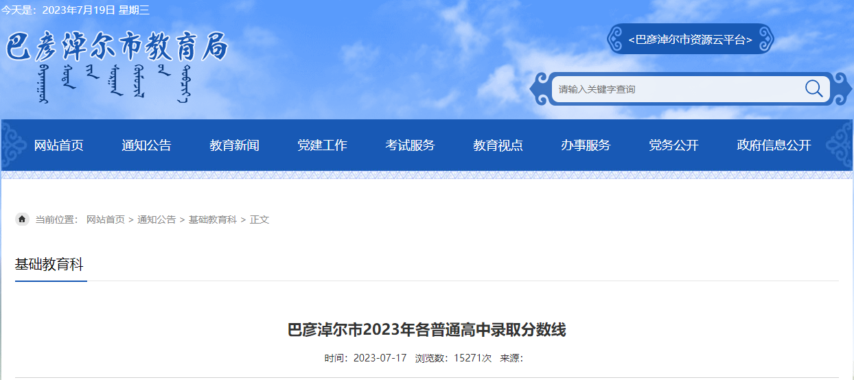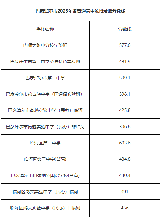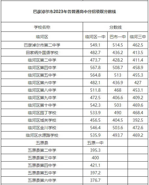 2023年内蒙古巴彦淖尔市各普通高中录取分数线(已公布)07-20