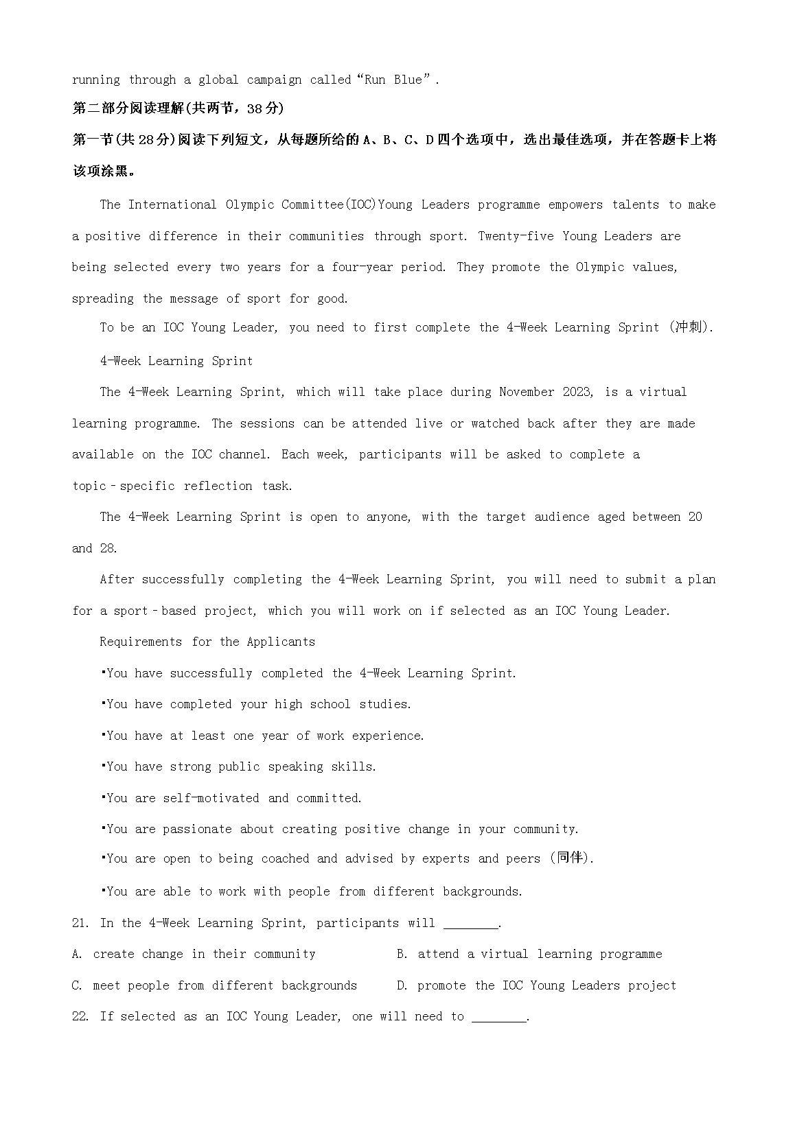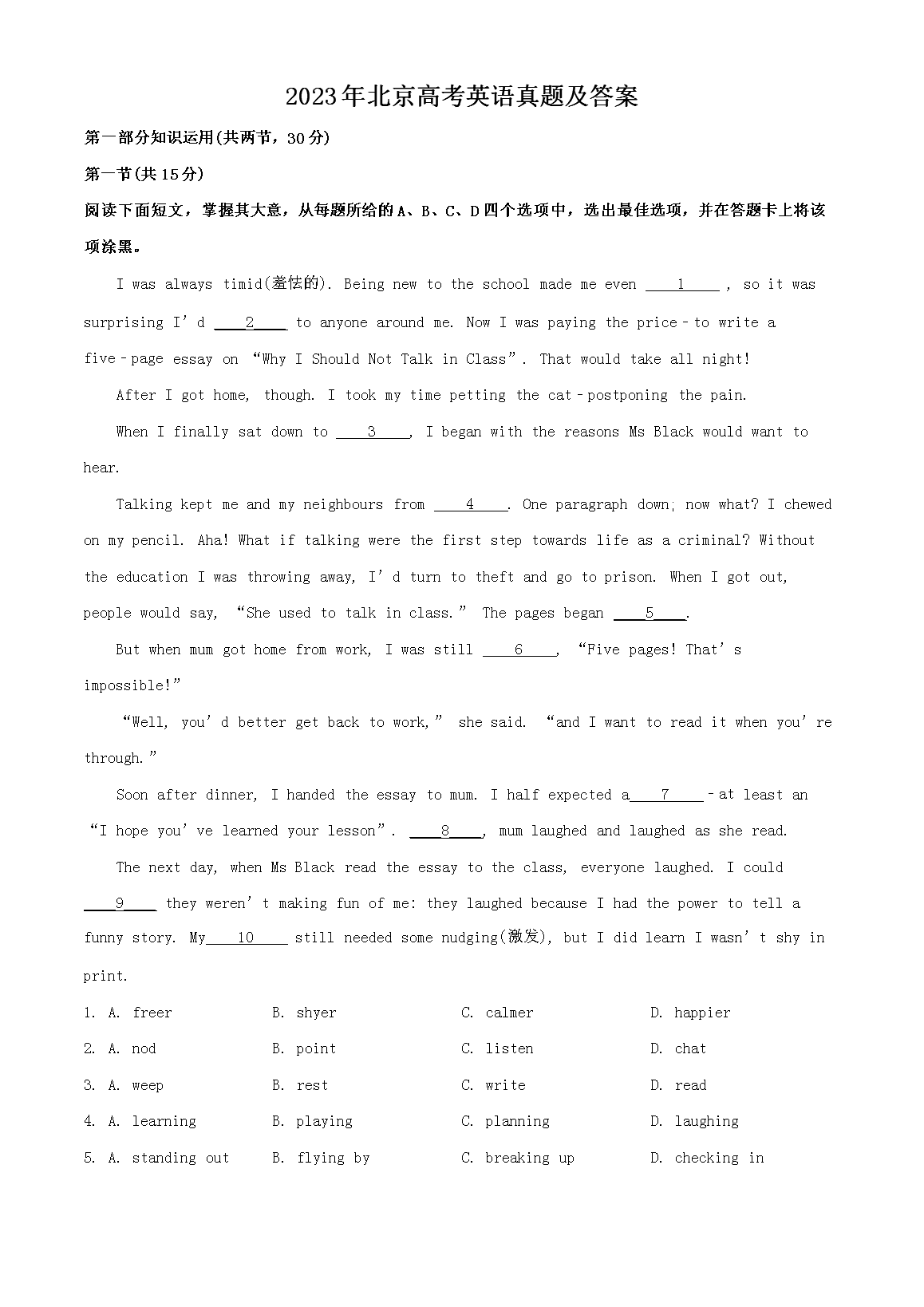 2023年北京高考英语真题及答案(Word版)08-10