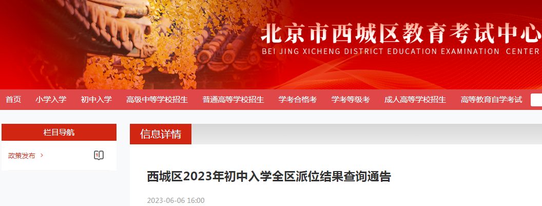 原文标题:西城区2023年初中入学全区派位结果查询公告