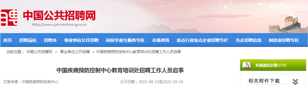 原文标题:中国疾病预防控制中心教育培训处招聘工作人员启事