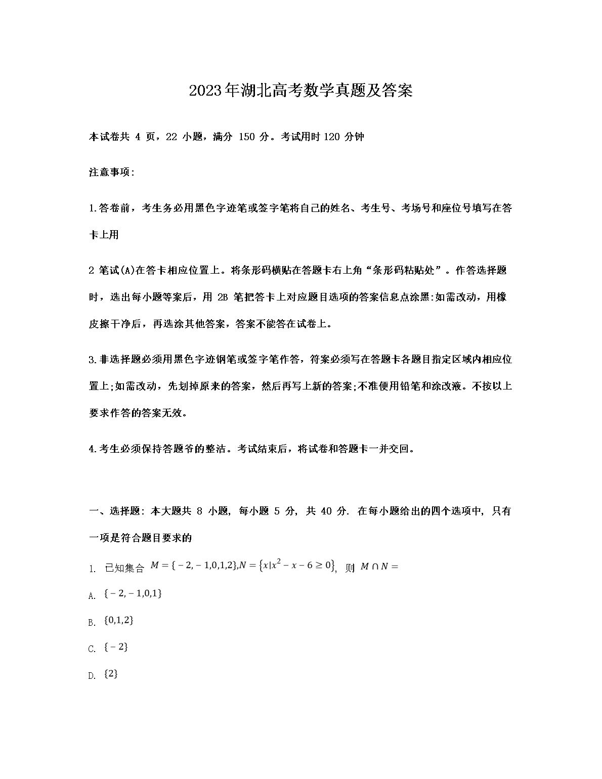 【文档预览】 文档大全网整理发布2023年湖北高考数学真题及答案(Word版),前五页预览如下: