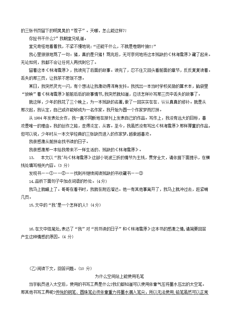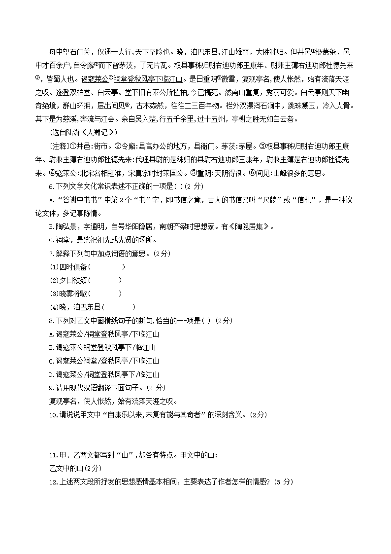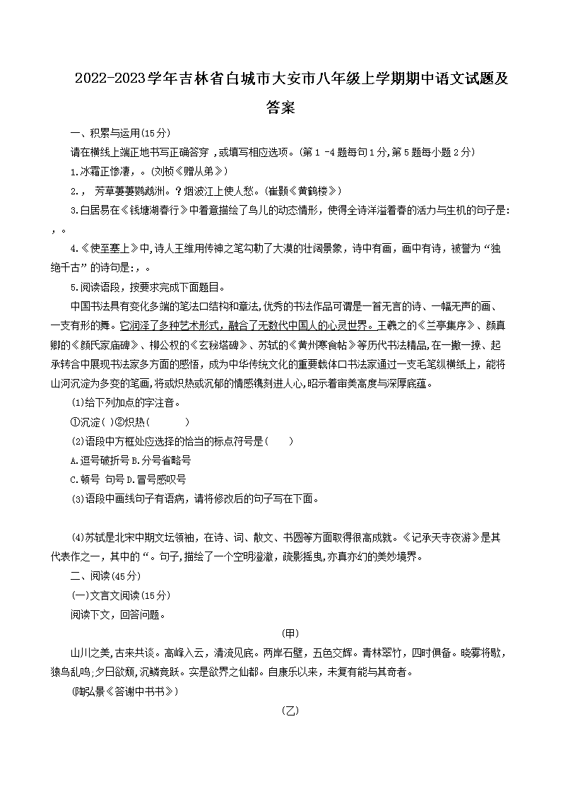 2022-2023学年吉林省白城市大安市八年级上学期期中语文试题及答案(Word版)10-21