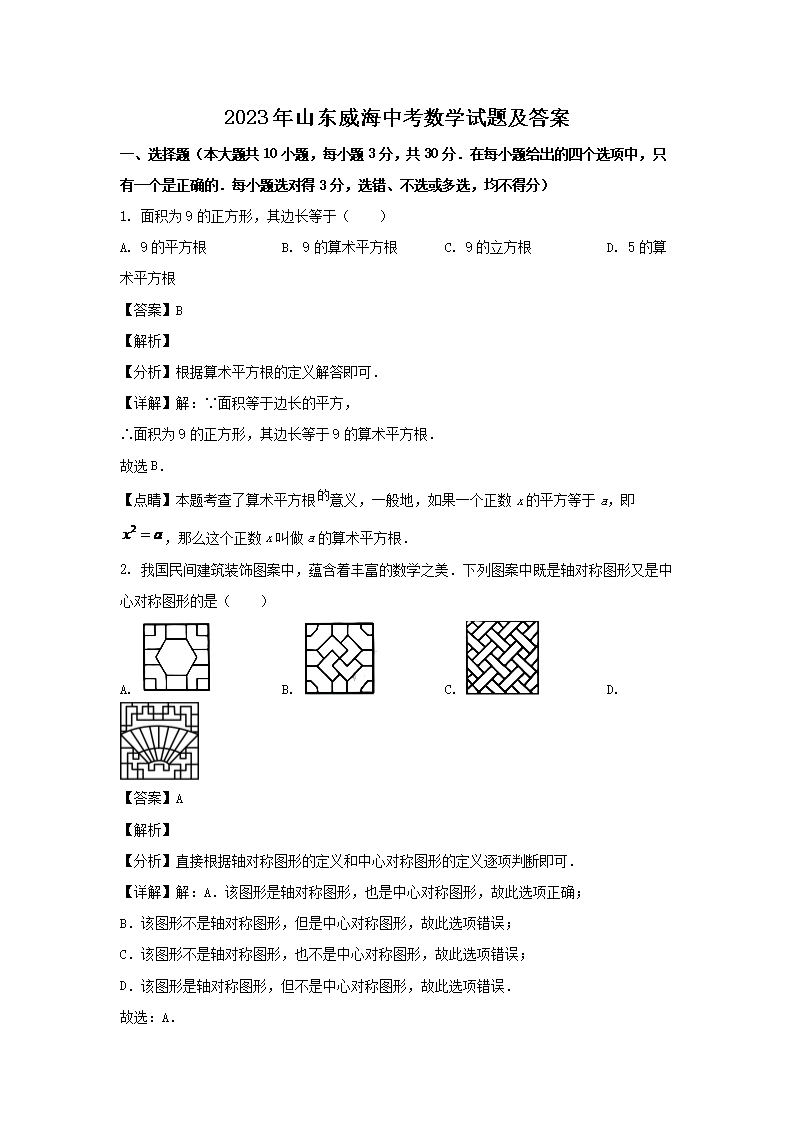 2023年山东威海中考数学试题及答案(Word版)07-13