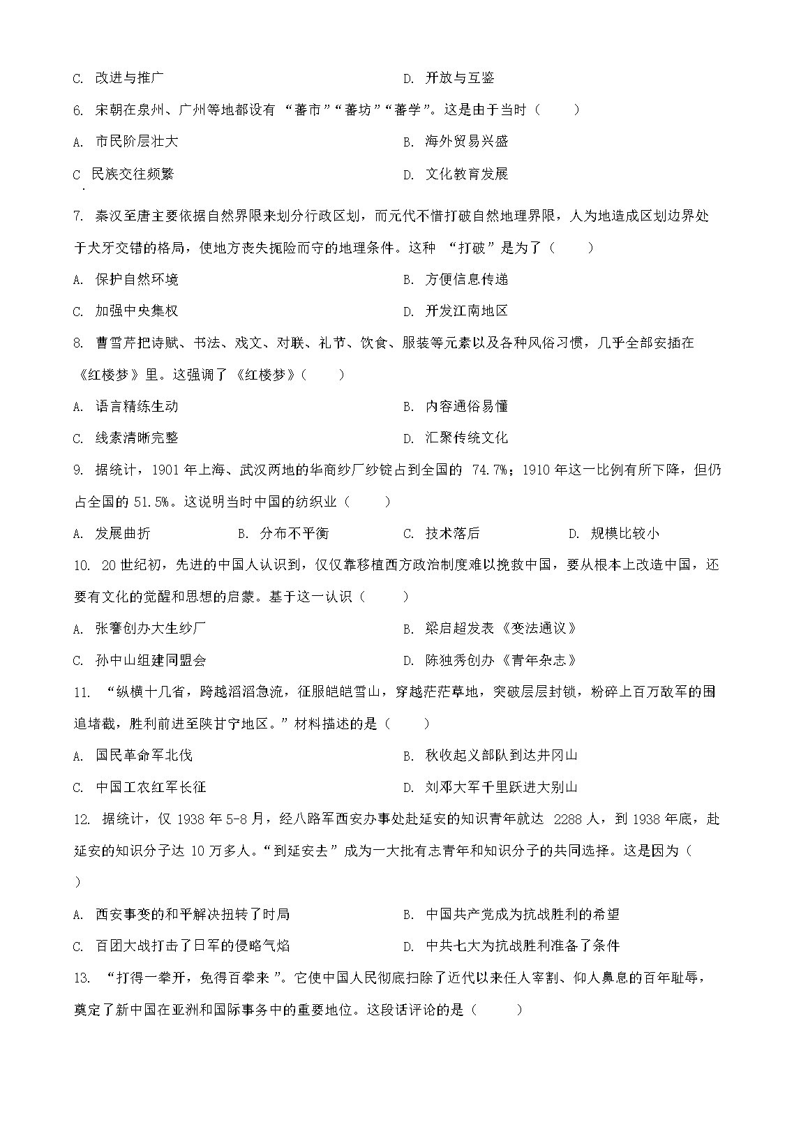 2023年河南鹤壁中考历史真题及答案(Word版)07-02
