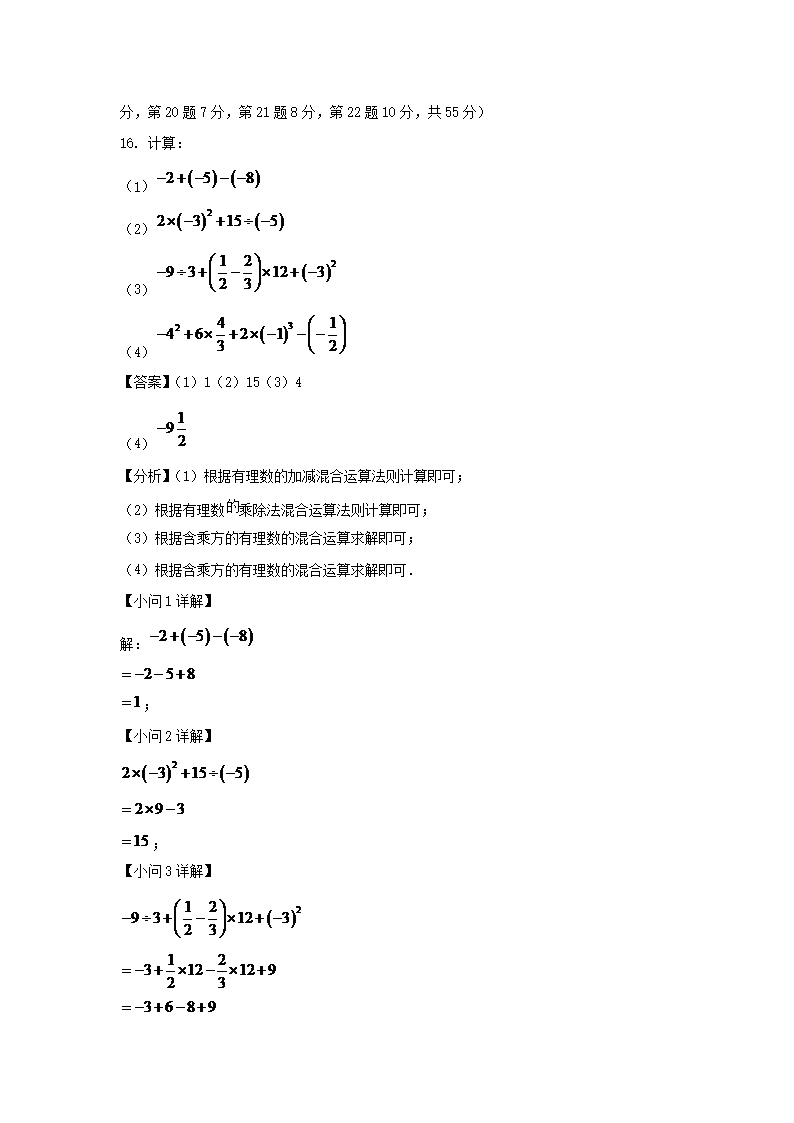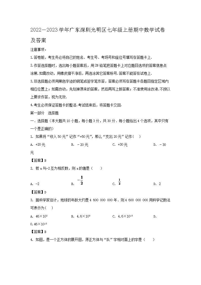 2022-2023学年广东深圳光明区七年级上册期中数学试卷及答案(Word版)09-23