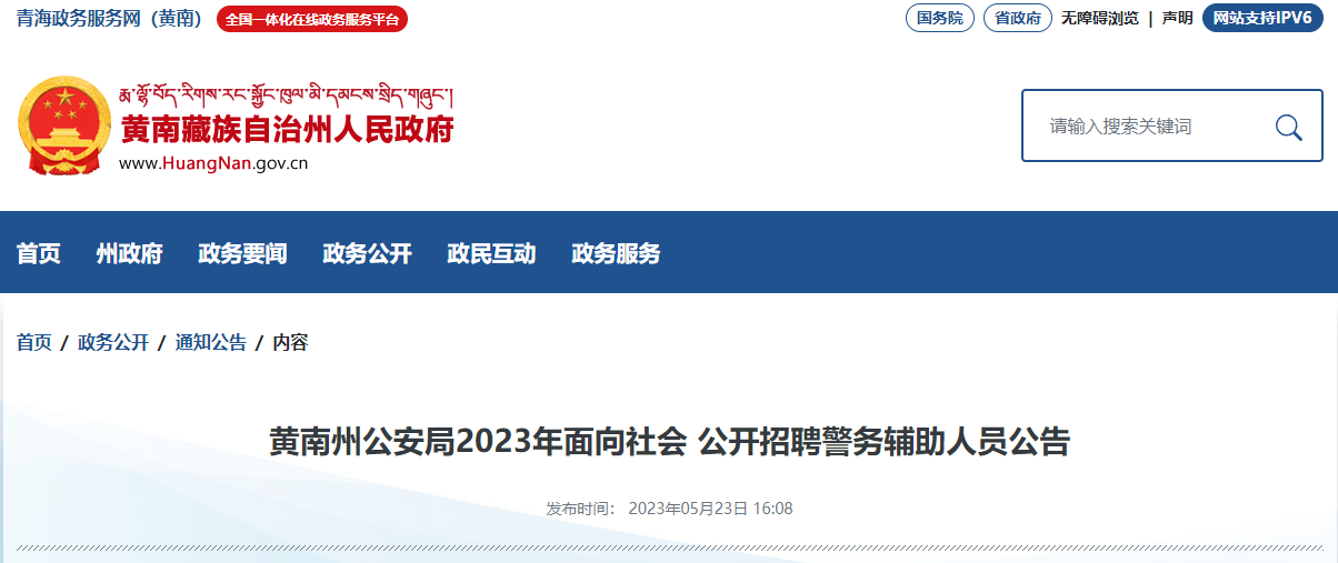 原文标题:黄南州公安局2023年面向社会 公开招聘警务辅助人员公告
