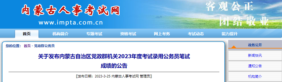 2023年内蒙古公务员成绩查询时间及查分入口[已公布]03-29