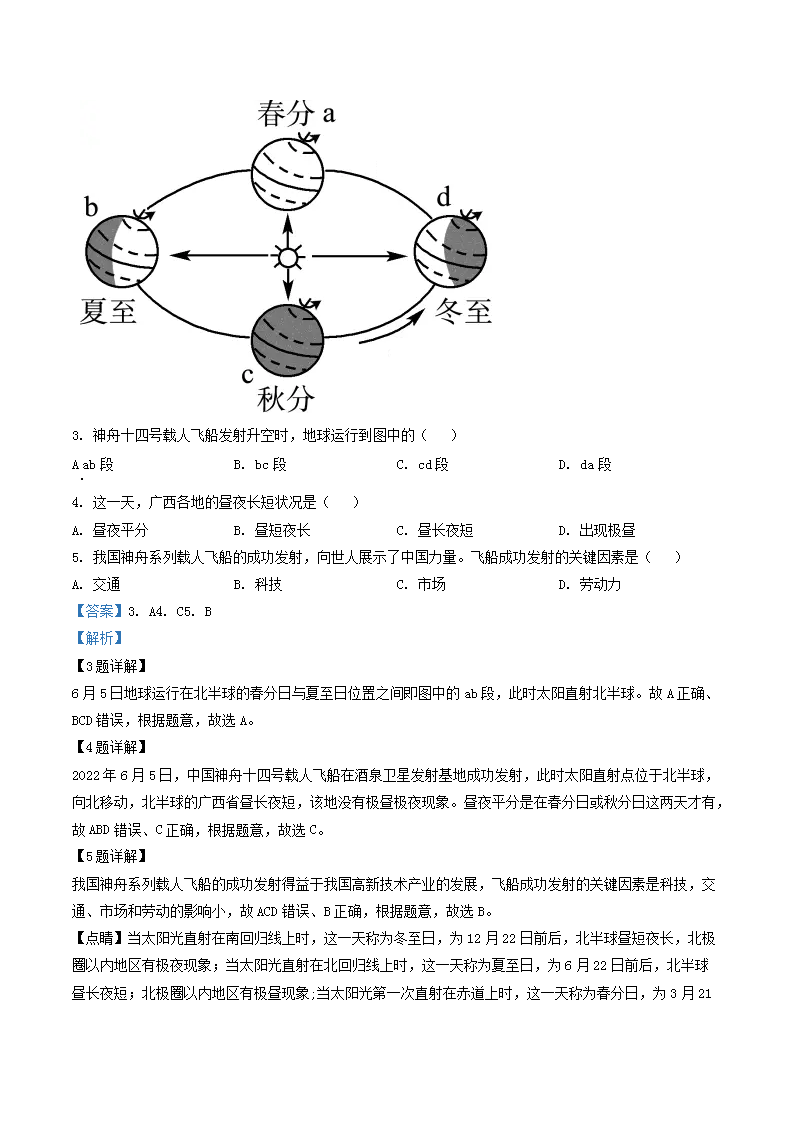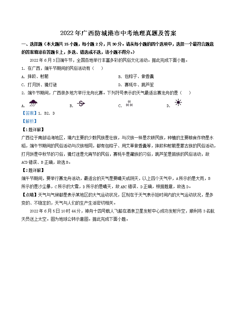2022年广西防城港市中考地理真题及答案(Word版)05-30