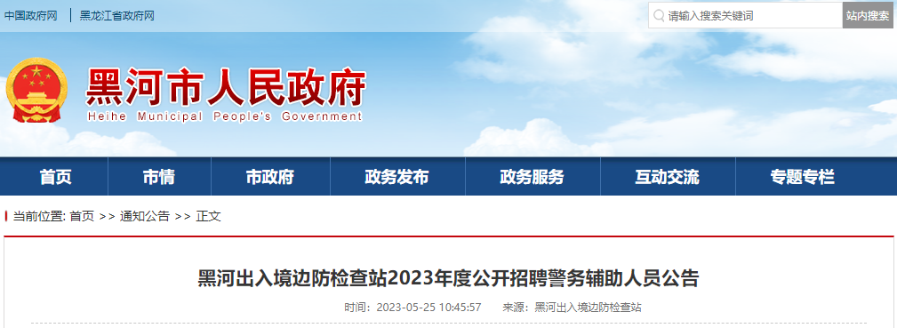 原文标题:黑河出入境边防检查站2023年度公开招聘警务辅助人员公告