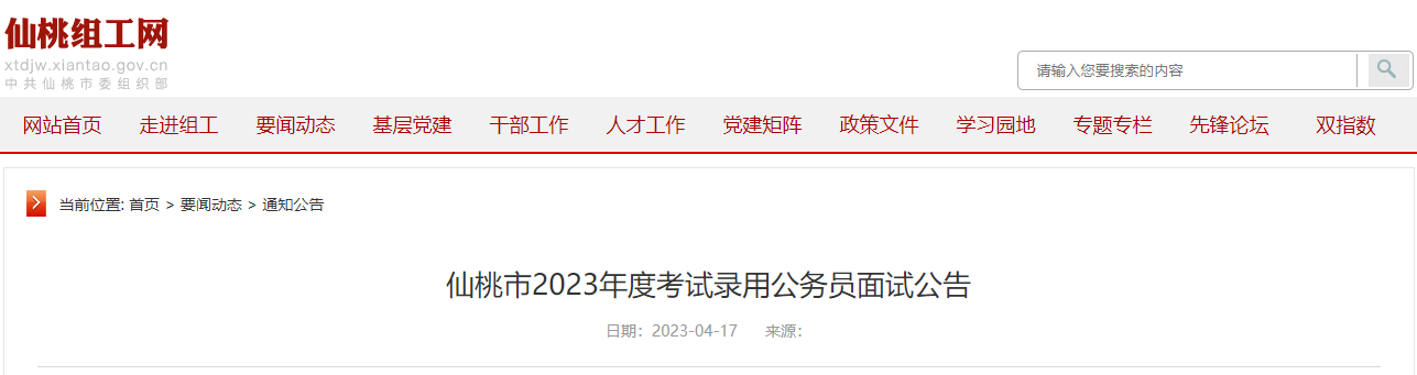 原文标题:仙桃市2023年度考试录用公务员面试公告
