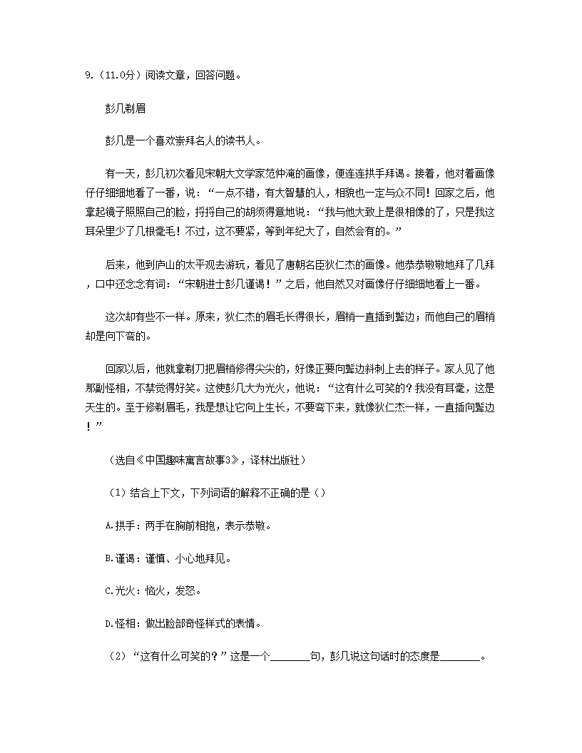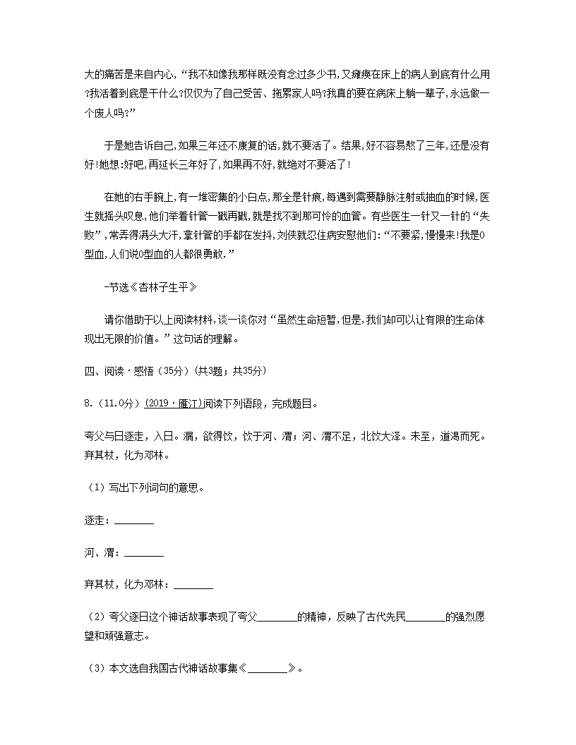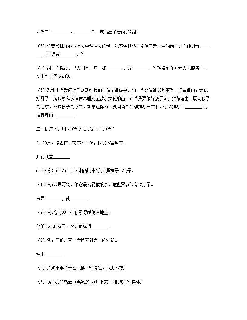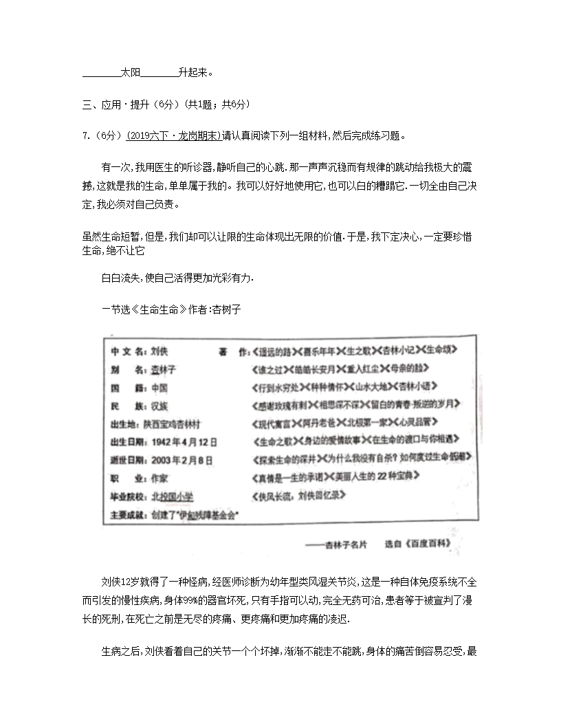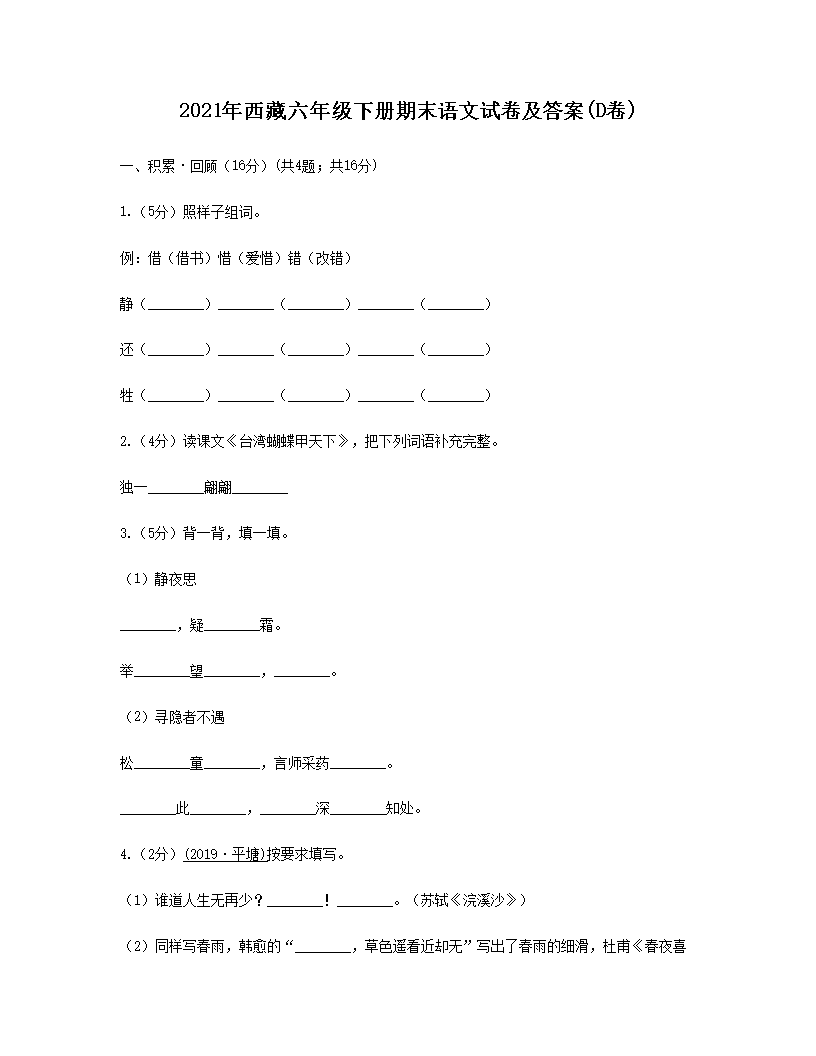 2021年西藏六年级下册期末语文试卷及答案(D卷)(Word版)07-29