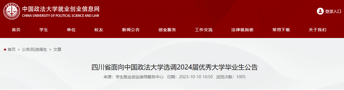 四川省面向中国政法大学选调2024届优秀大学毕业生公告10-13