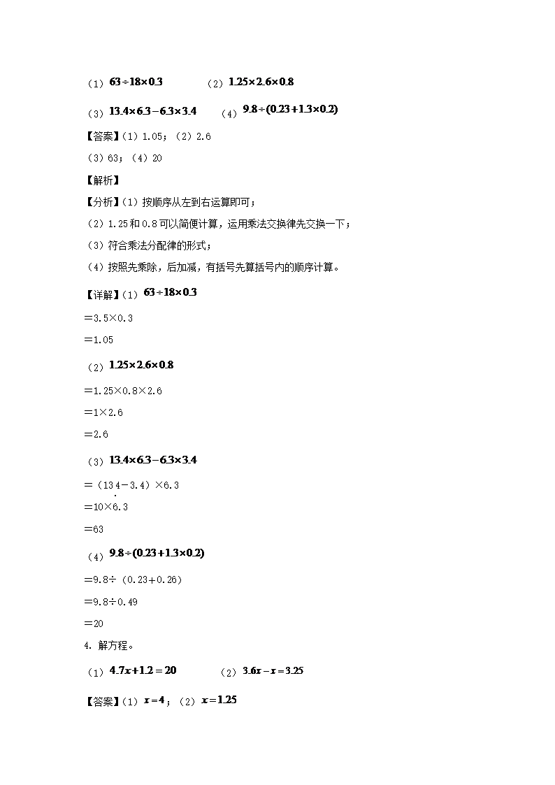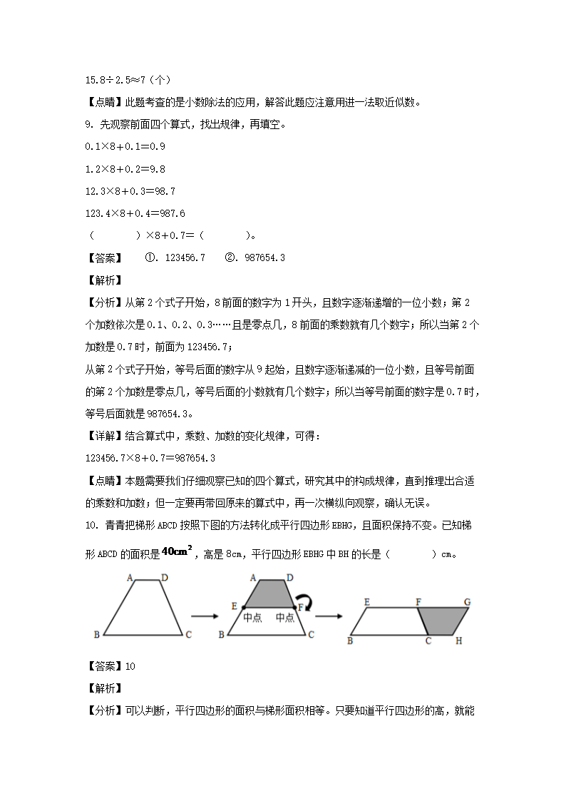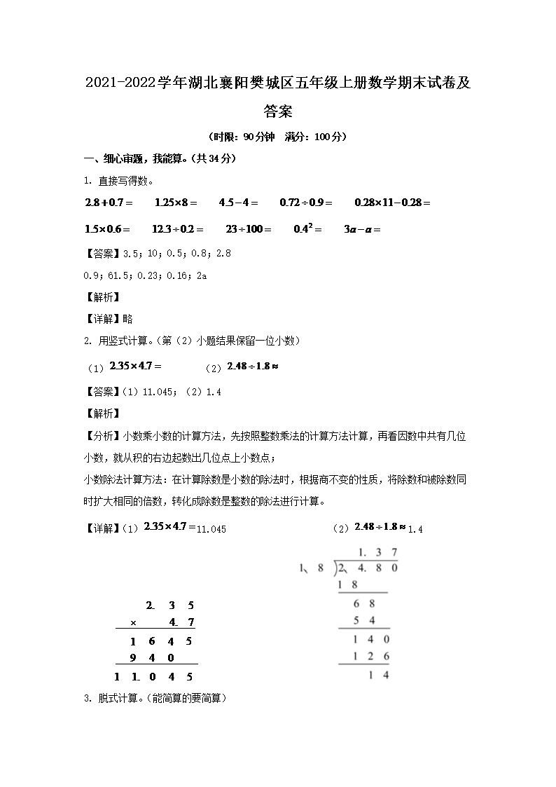 2021-2022学年湖北襄阳樊城区五年级上册数学期末试卷及答案(Word版)09-07