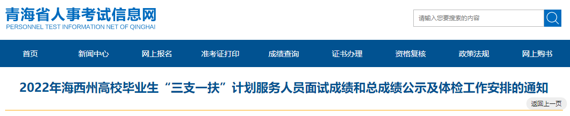 2022年青海海西州高校毕业生“三支一扶”面试成绩及体检工作安排12-22