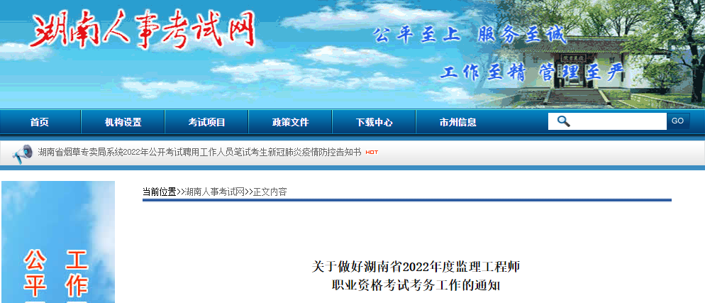 【#监理师考试# 导语】©文档大全网从湖南人事考试网获悉,2022年湖南监理工程师报考工作现已启动,报名时间:3月22日-29日,考试时间:5月14日-15日,更多事宜请参考阅读《考务通知》,官方公告原文如下: