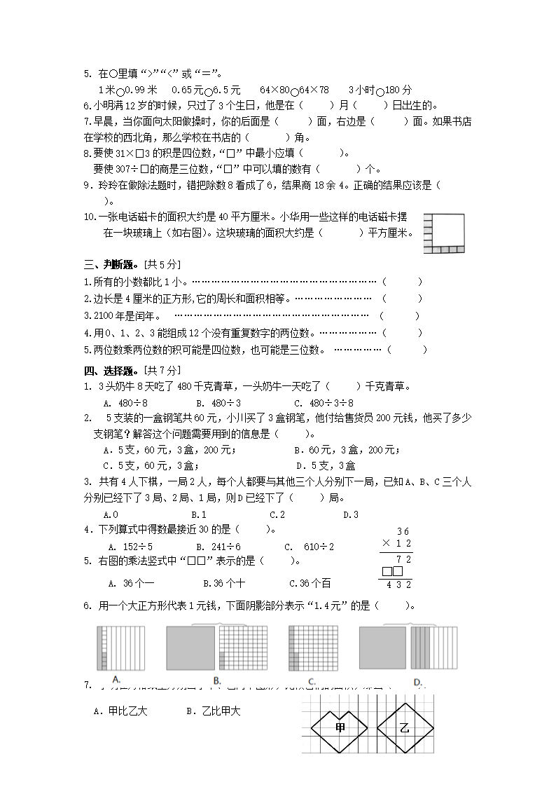 2021-2022学年浙江省台州市路桥区三年级下学期期末素质测试数学试题及答案(Word版)09-05