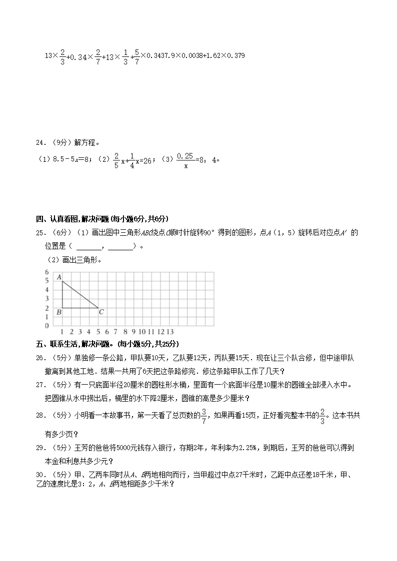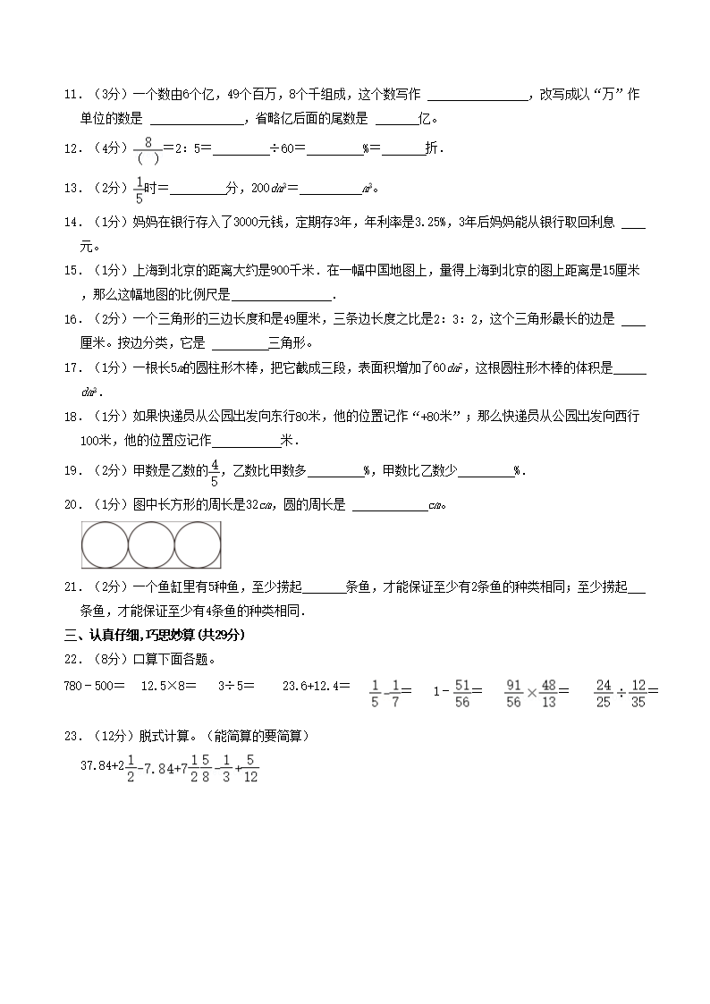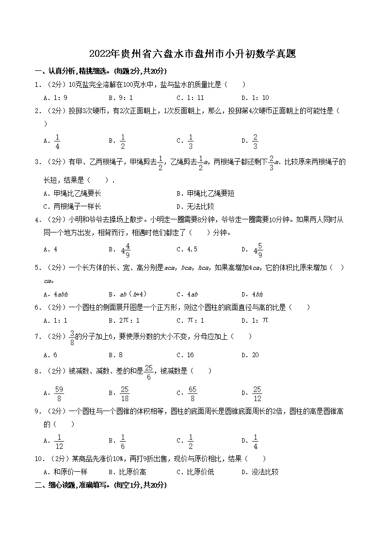 2022年贵州省六盘水市盘州市小升初数学真题(Word版)09-01
