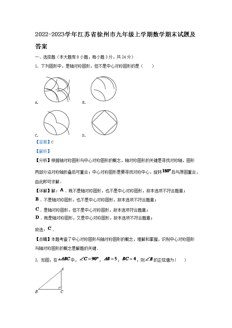 2022-2023学年江苏省徐州市九年级上学期数学期末试题及答案(Word版)09-26