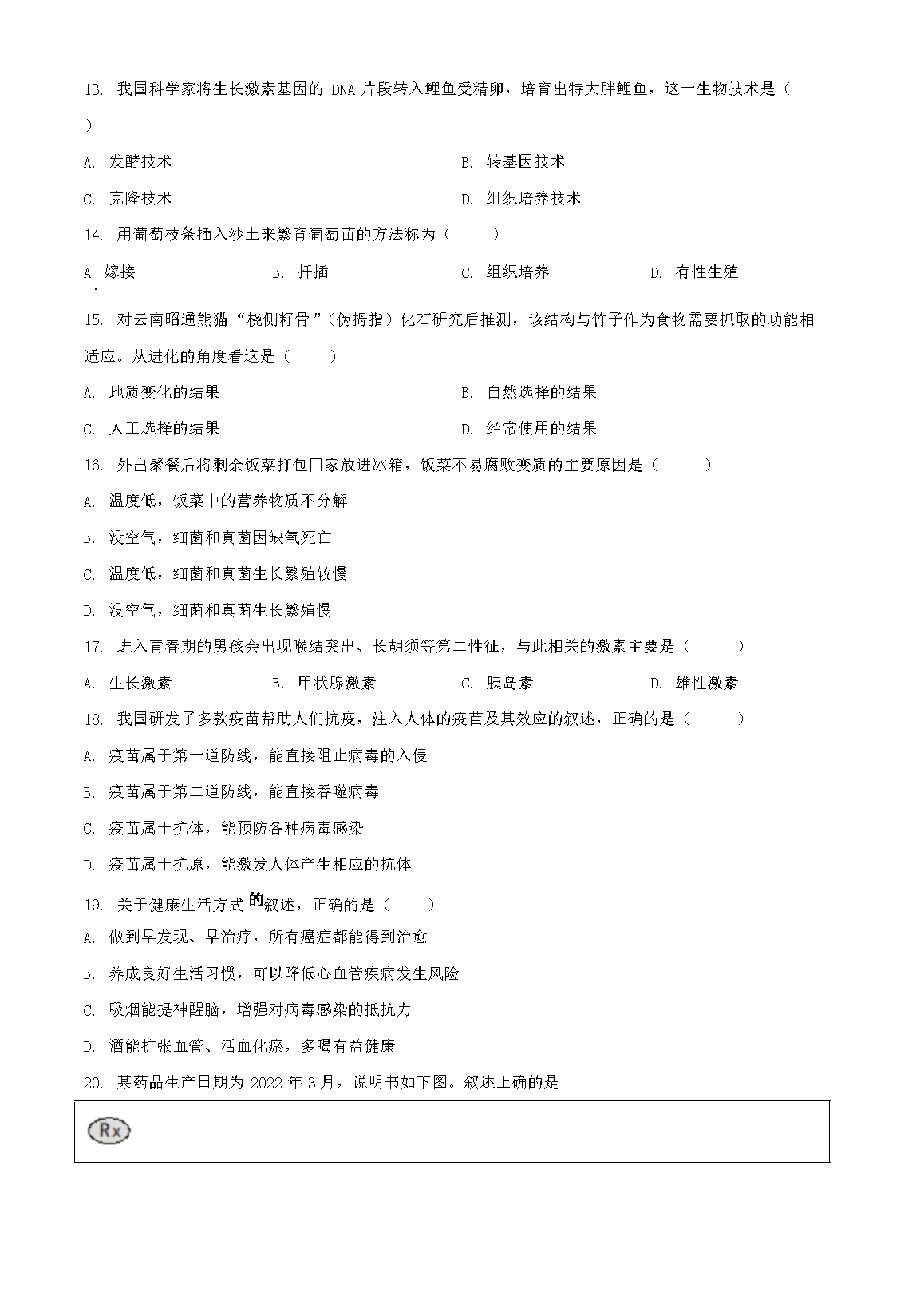 2023年重庆涪陵中考生物真题及答案(Word版)06-19