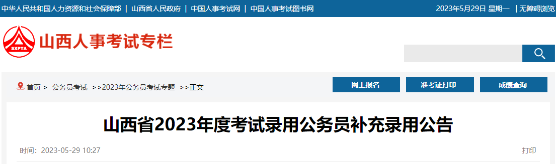 原文标题:山西省2023年度考试录用公务员补充录用公告