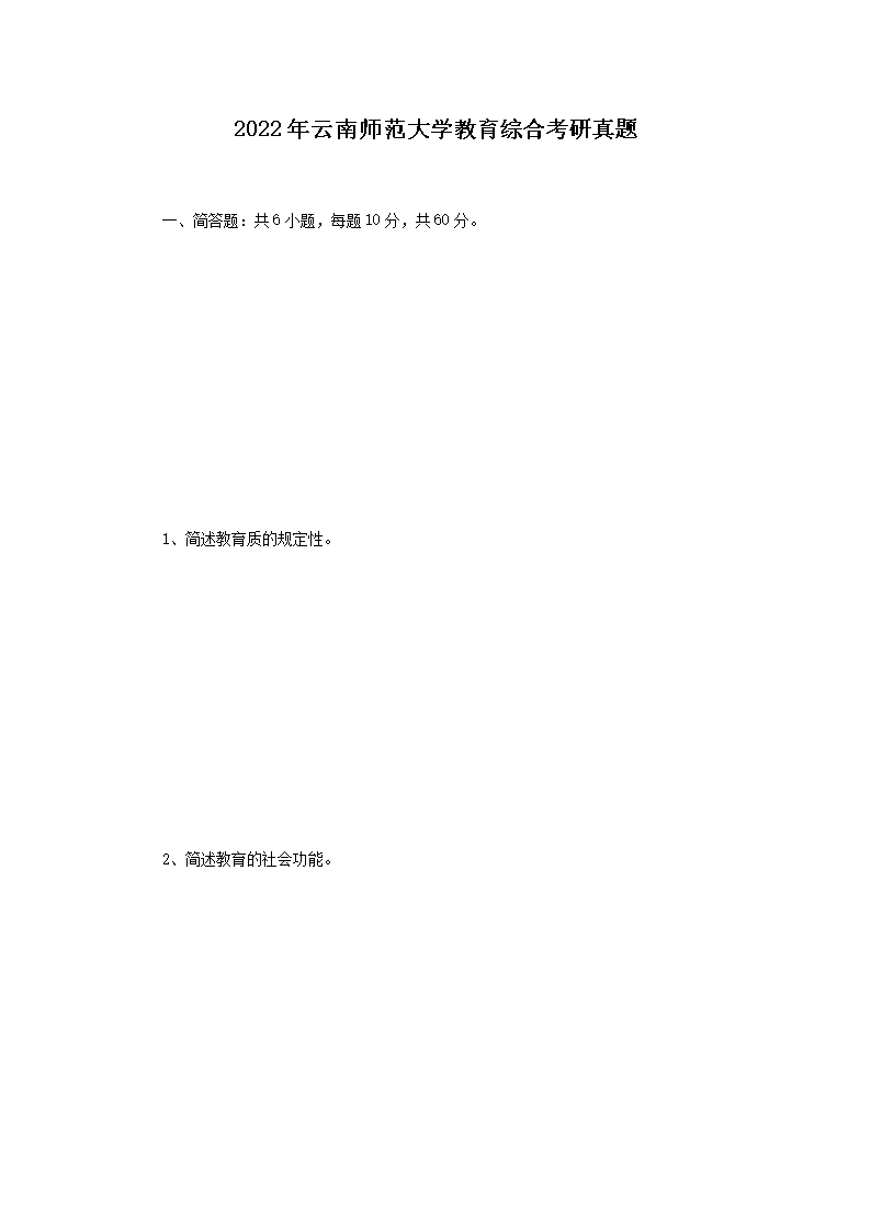 2022年云南师范大学教育综合考研真题(Word版)08-23