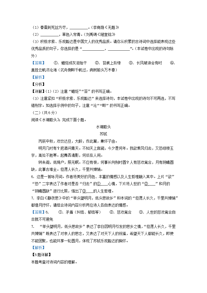 2021-2022学年北京丰台区初三第一学期语文期末试卷及答案(Word版)07-06