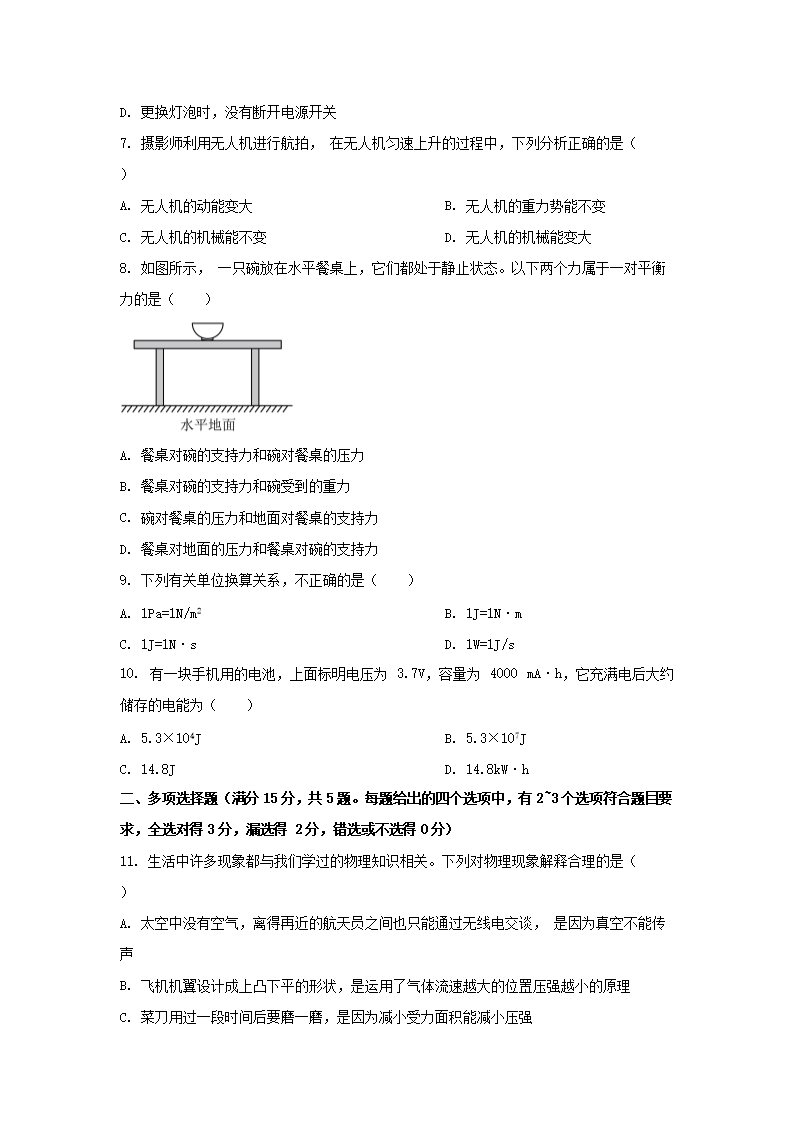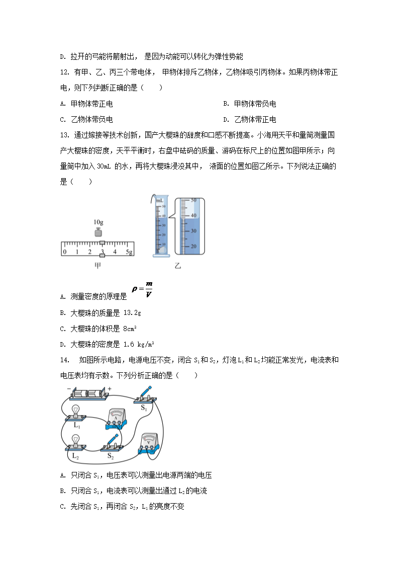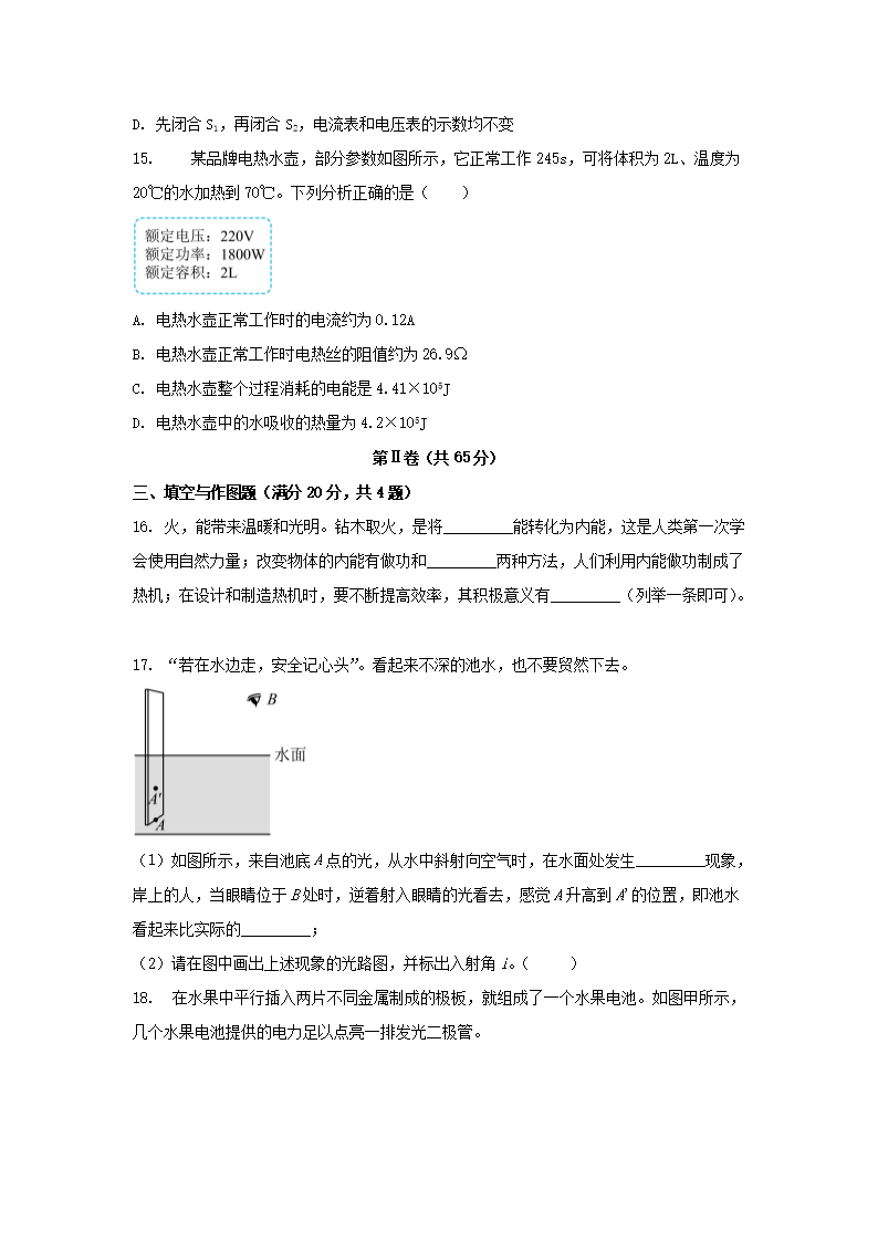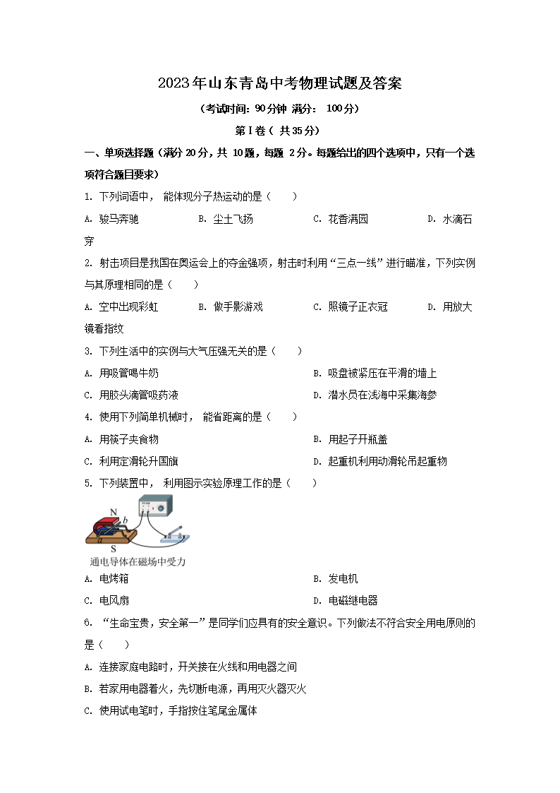 2023年山东青岛中考物理试题及答案(Word版)10-09