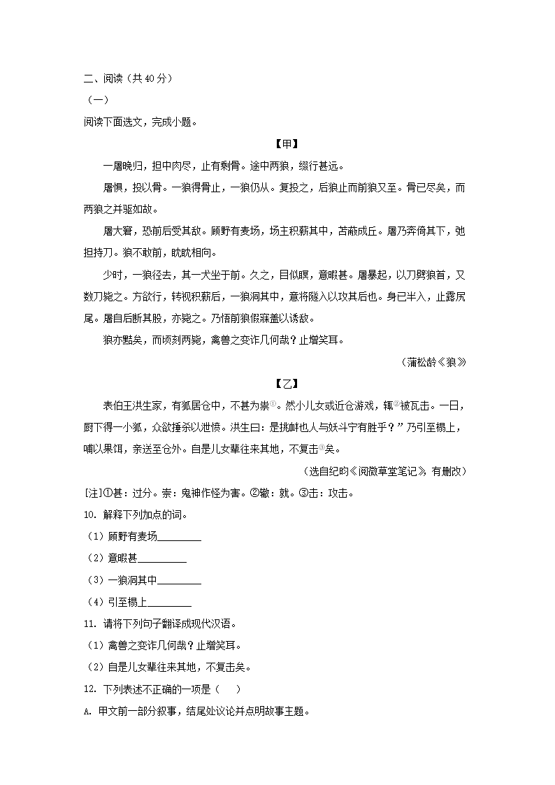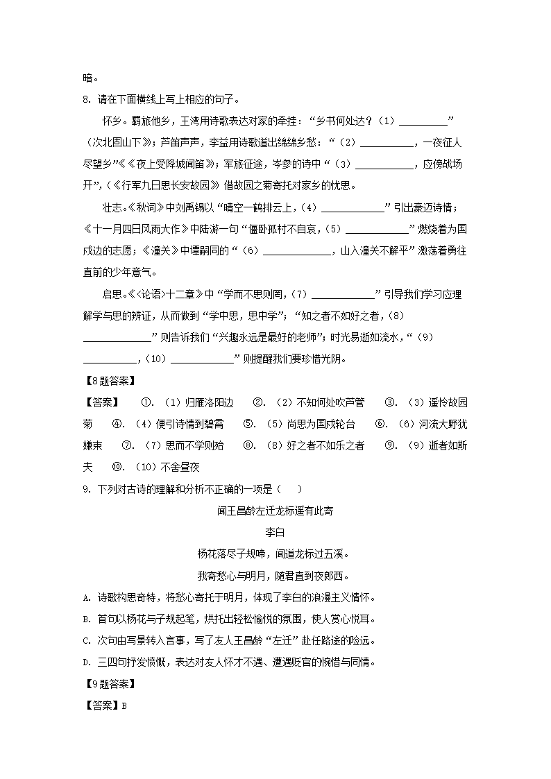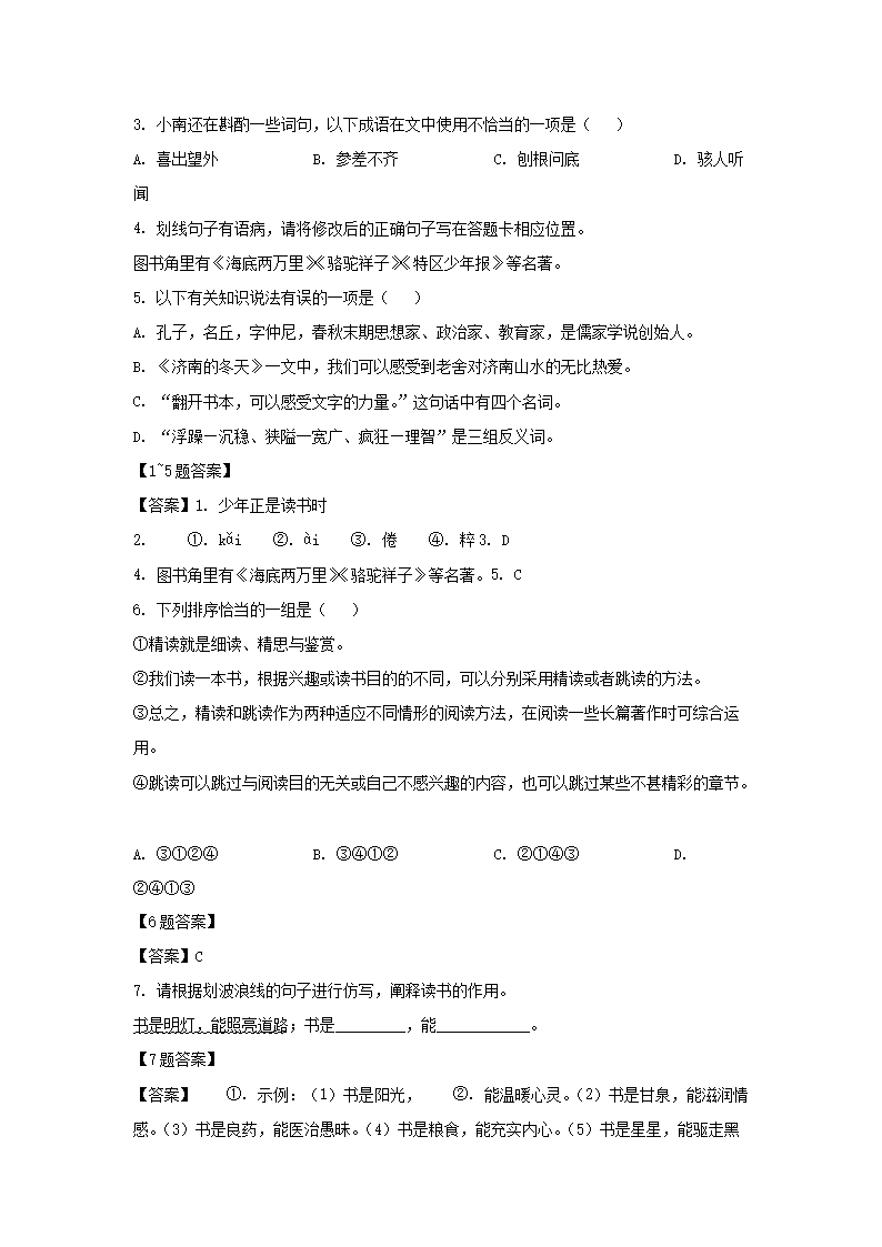 2020-2021学年广东深圳七年级上册期末语文试卷及答案(Word版)09-27