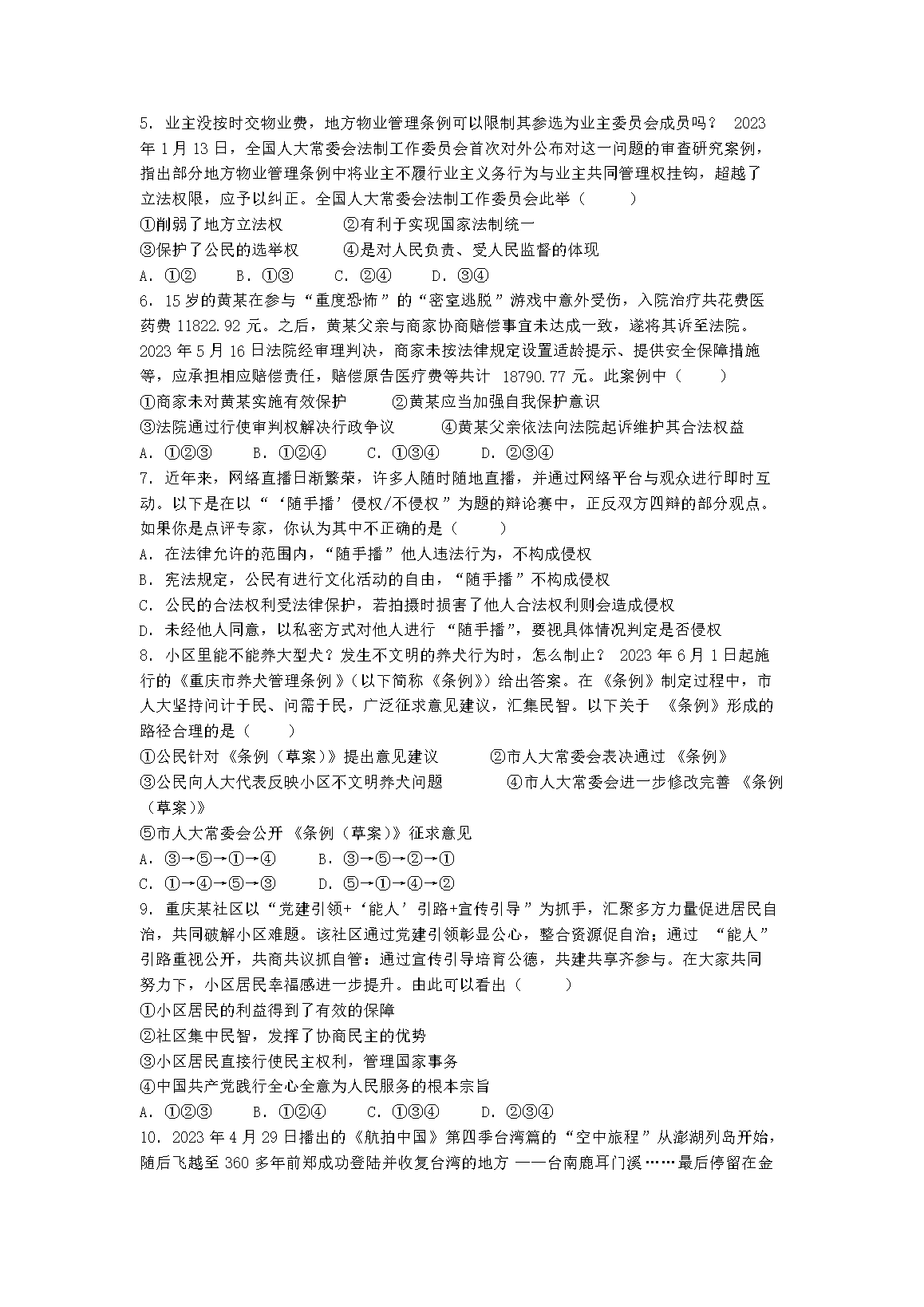 2023年重庆南川中考道德与法治真题及答案(A卷)(Word版)06-17