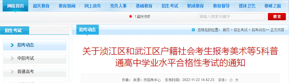 原文标题:关于浈江区和武江区户籍社会考生报考美术等5科普通高中学业水平合格性考试的通知