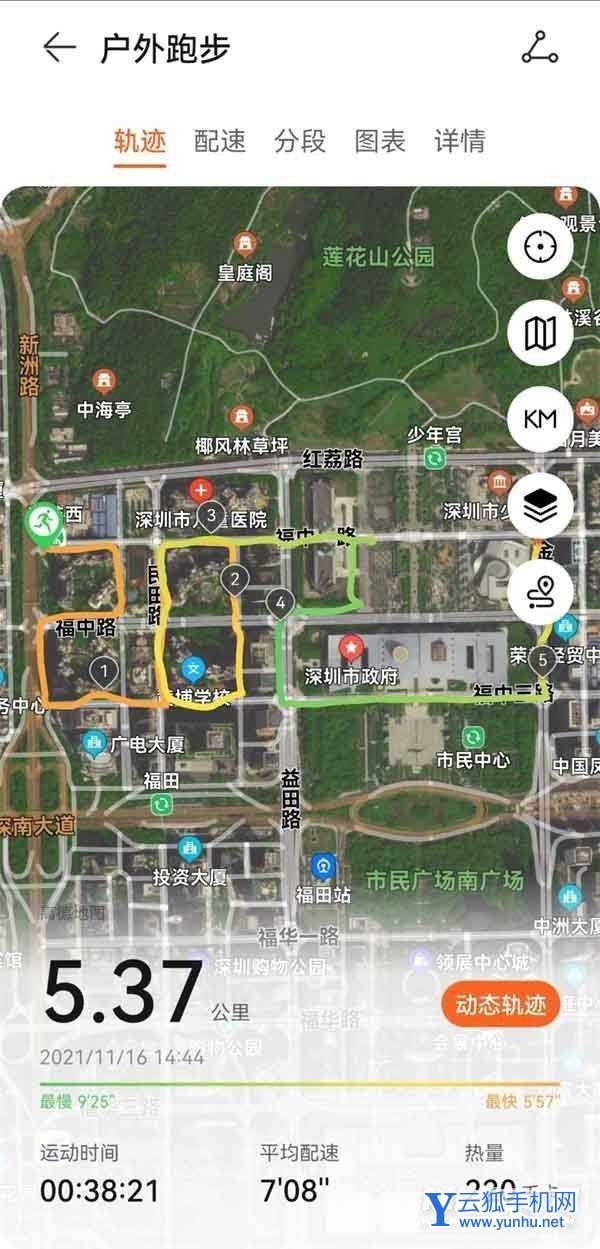 废话不多说,直接跑步轨迹,为了更好的测试,我在深圳楼宇比较多的地区跑了一个路线较为复杂的2021图案,注意,这是没有连接手机的情况下完全依靠HUAWEI WATCH GT Runner自身的GPS记录的轨迹。