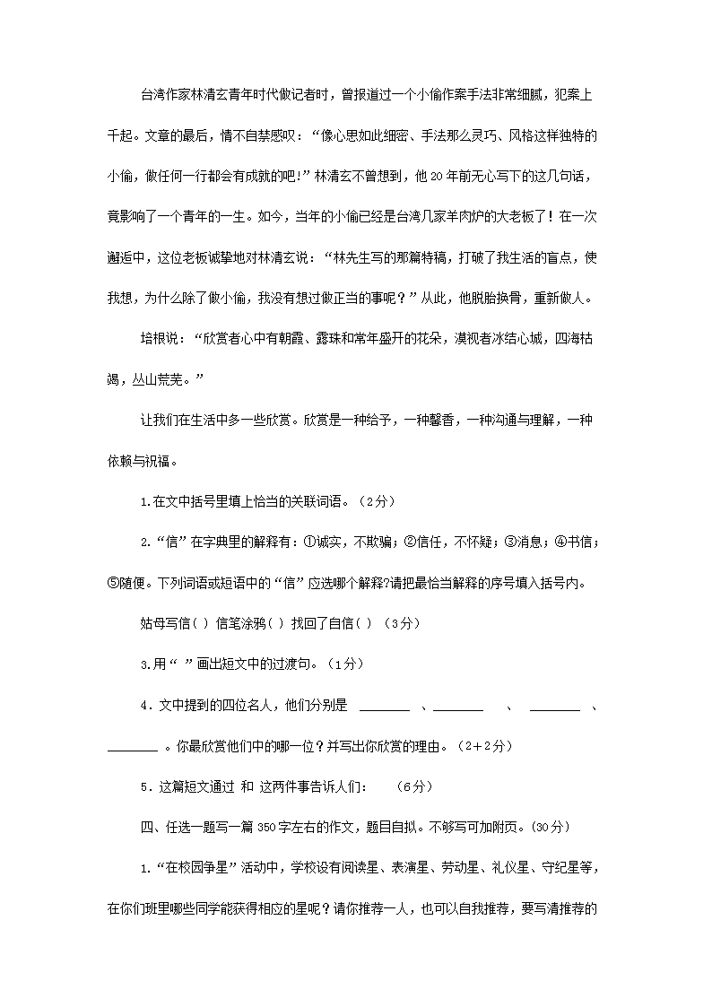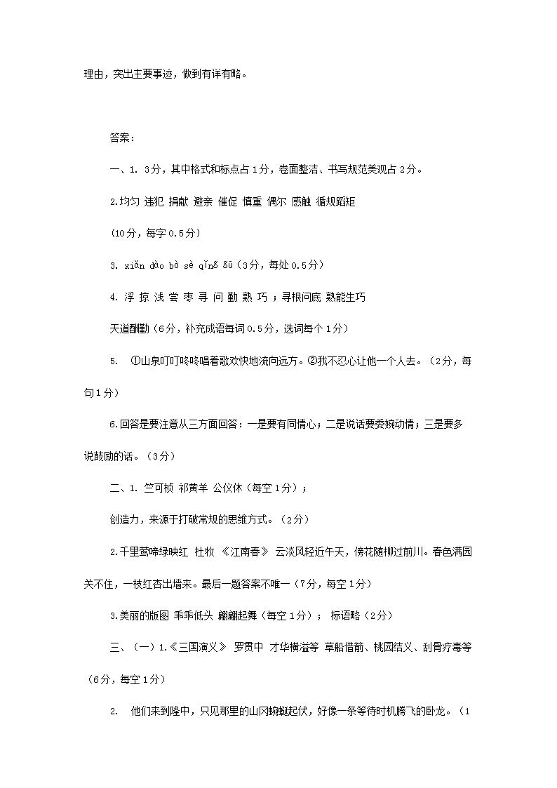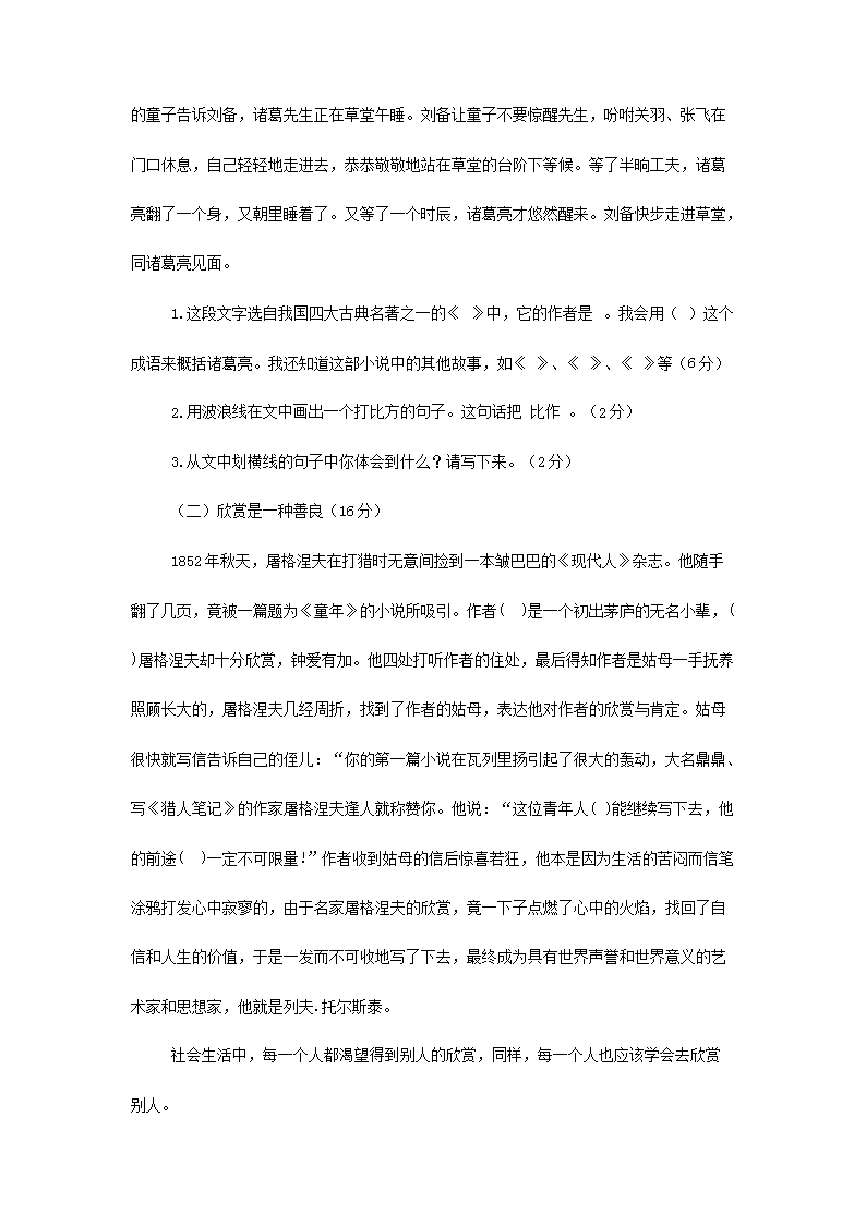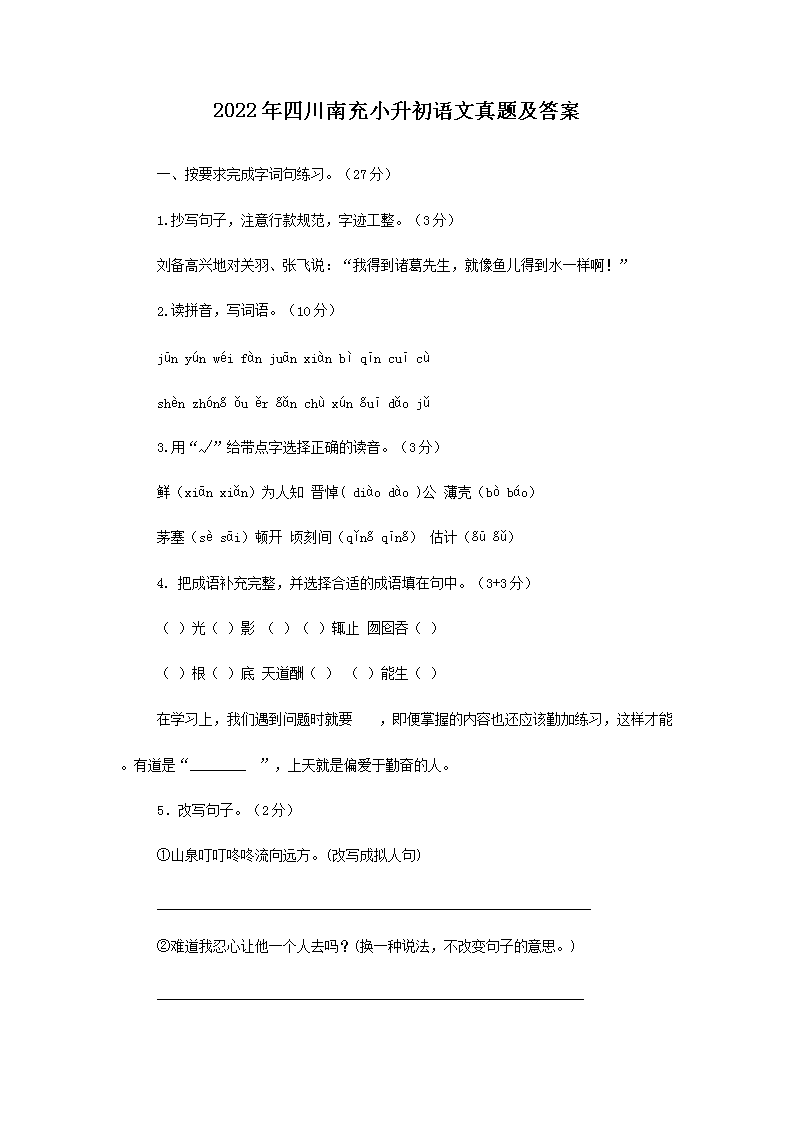 2022年四川南充小升初语文真题及答案(Word版)09-01