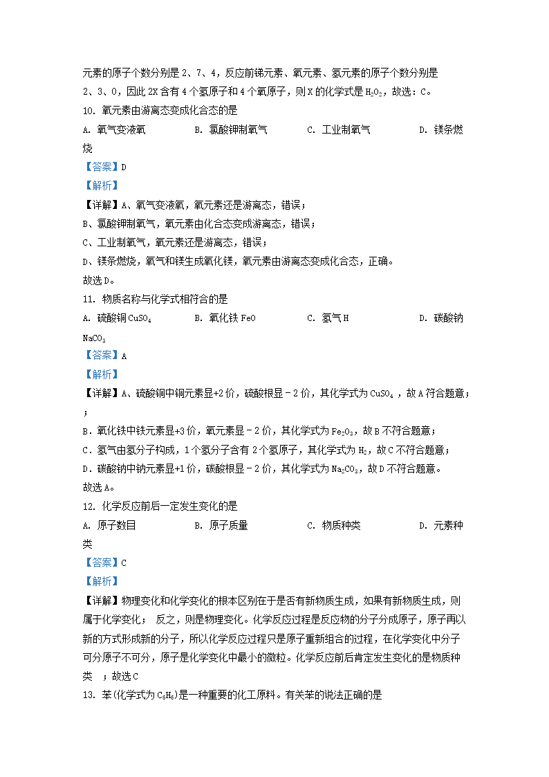 2022-2023学年上海市长宁区九年级上学期化学期中试题及答案(Word版)10-20