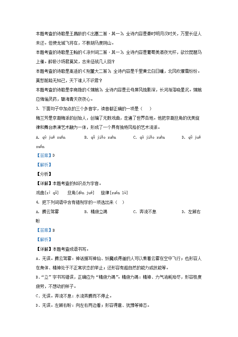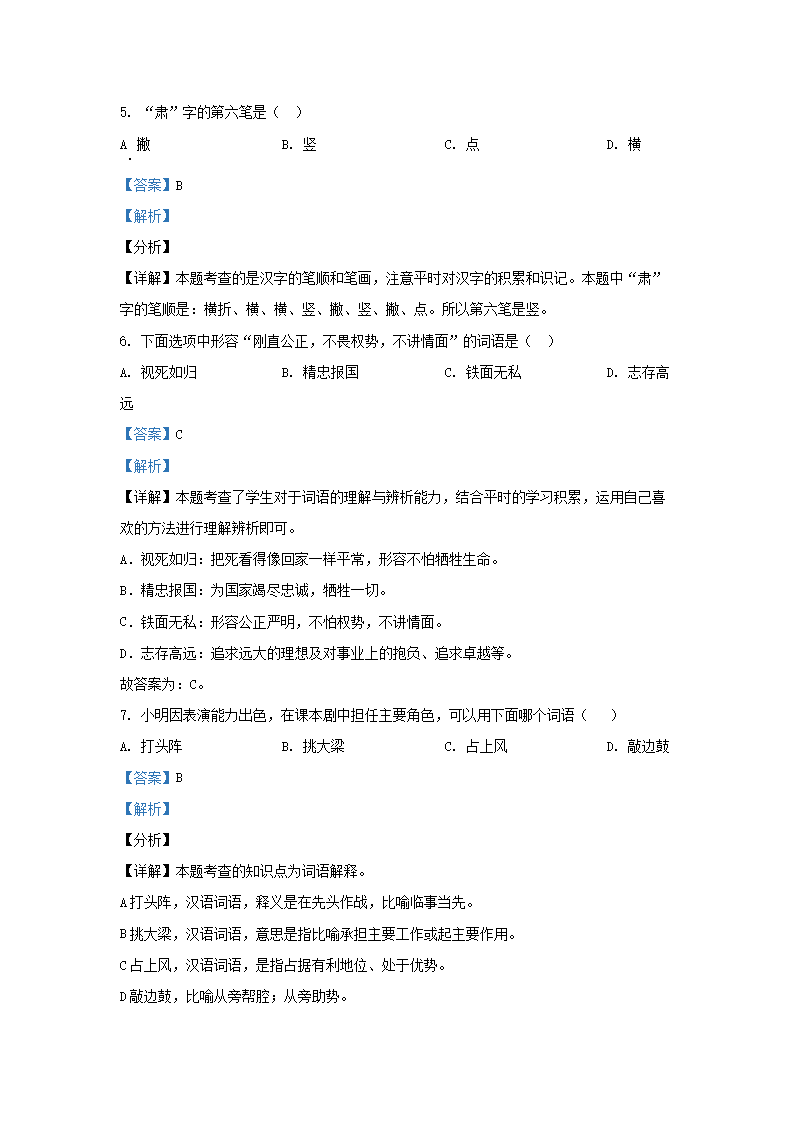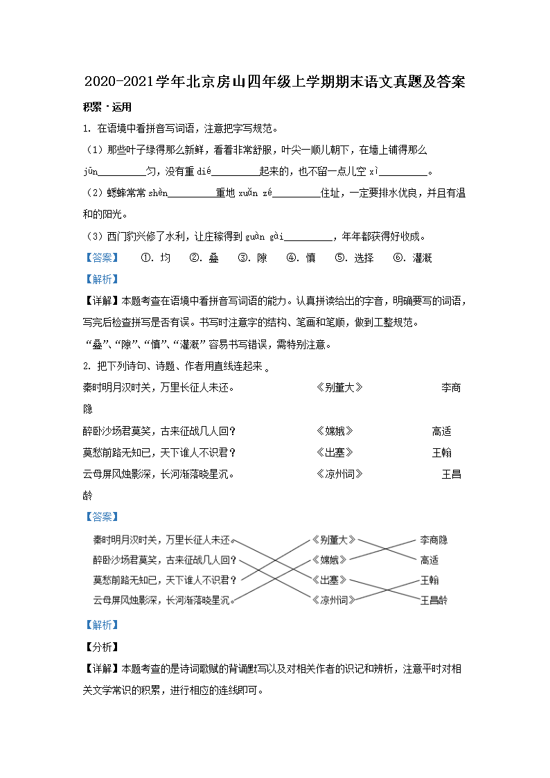 2020-2021学年北京房山四年级上学期期末语文真题及答案(Word版)06-30