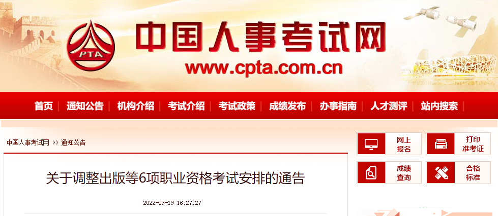 原文标题:关于调整出版等6项职业资格考试安排的通告