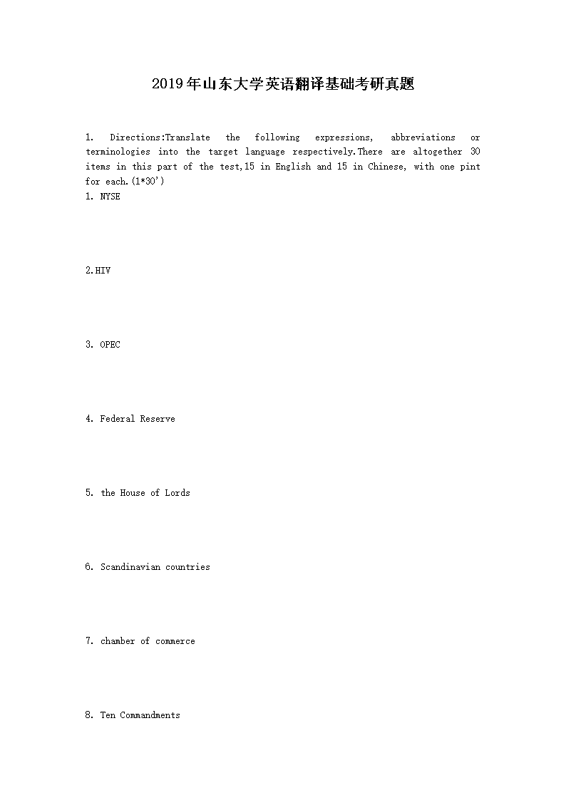 2019年山东大学英语翻译基础考研真题(Word版)10-11