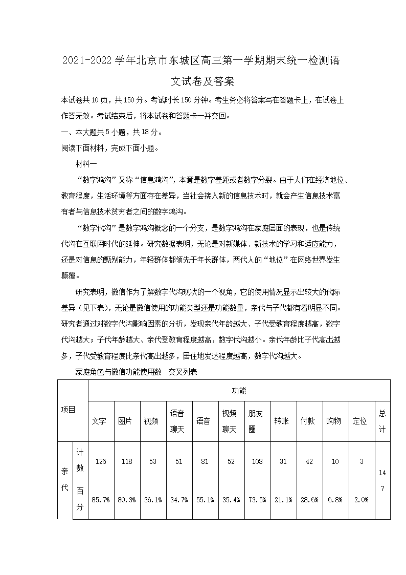 2021-2022学年北京市东城区高三第一学期期末统一检测语文试卷及答案(Word版)09-21