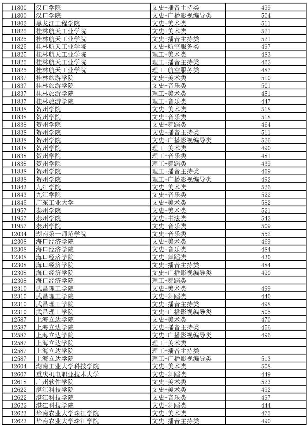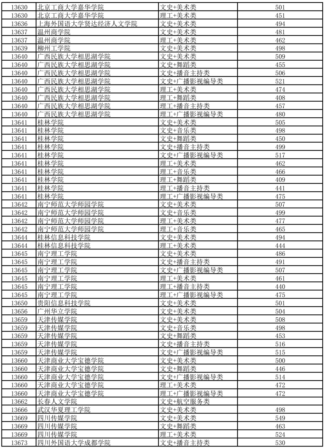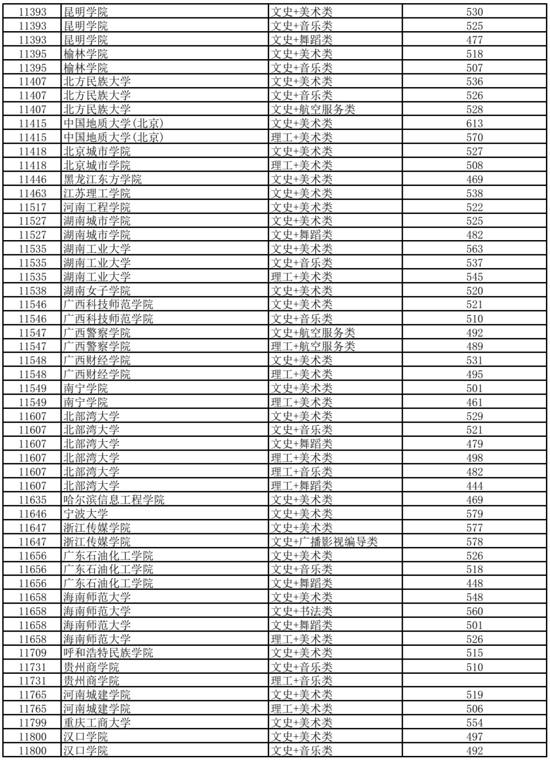 2023年广西高考招生本科提前批艺本二批最低投档分数线07-15