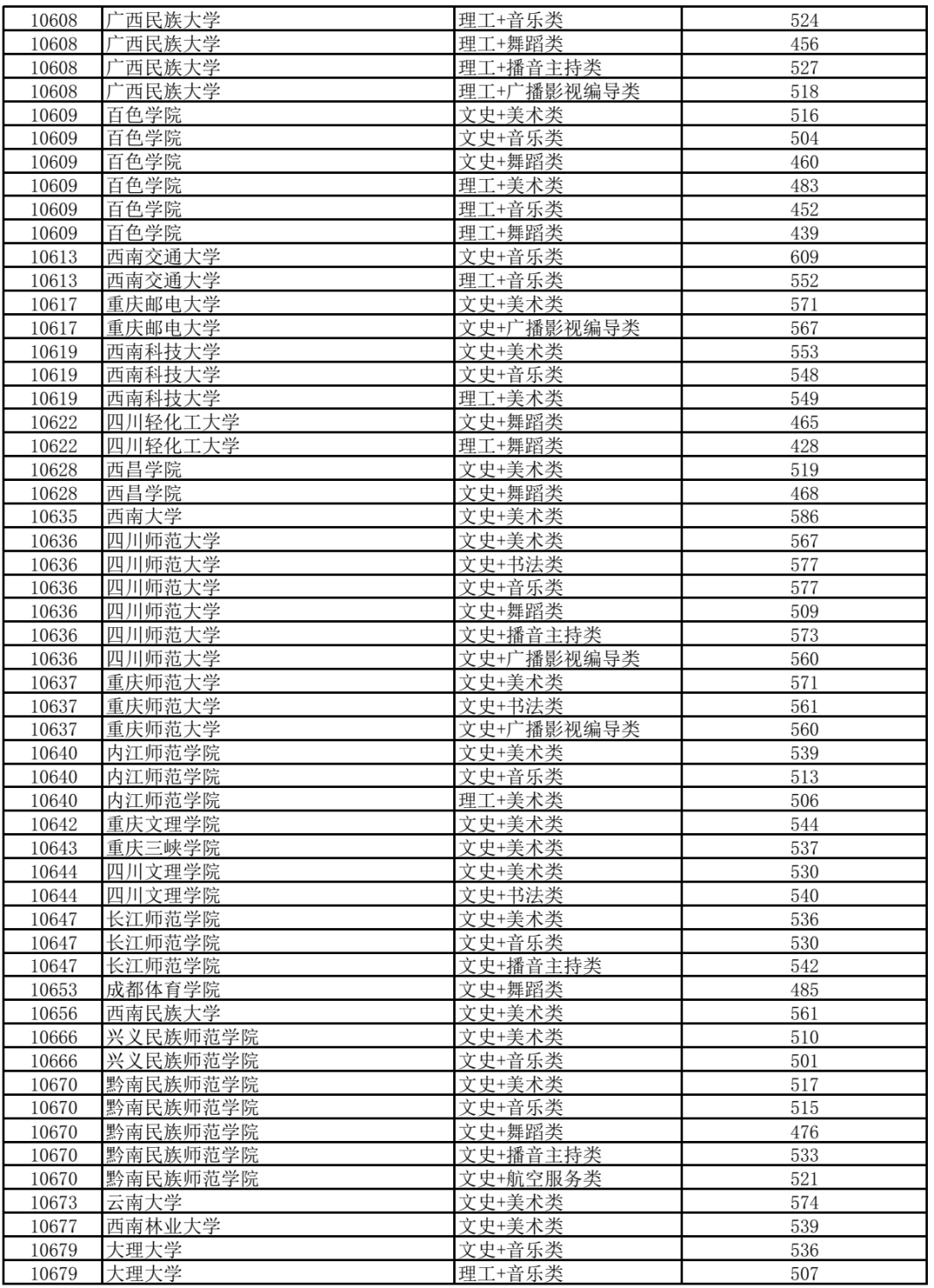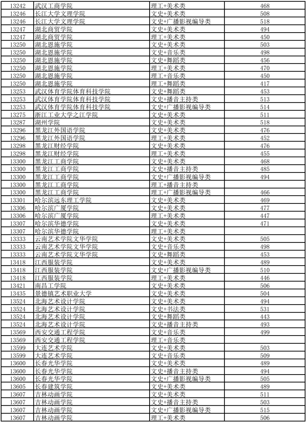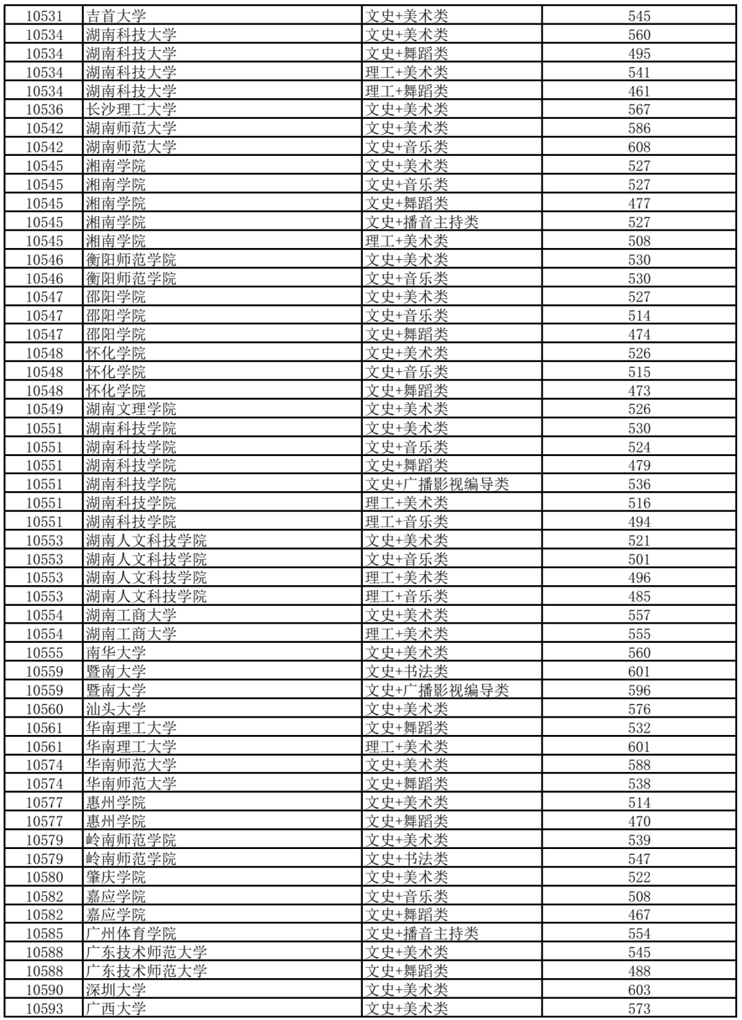 2023年广西高考招生本科提前批艺本二批最低投档分数线07-15