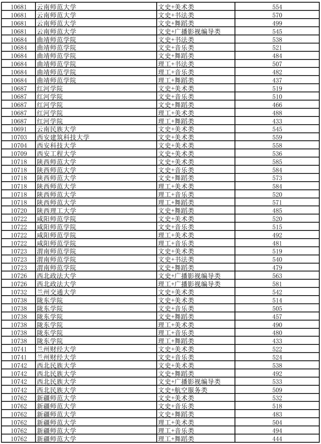 2.表中空白处表示无相应科类招生计划或无出档考生。