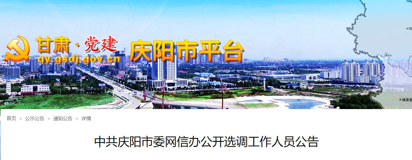 原文标题:中共庆阳市委网信办公开选调工作人员公告