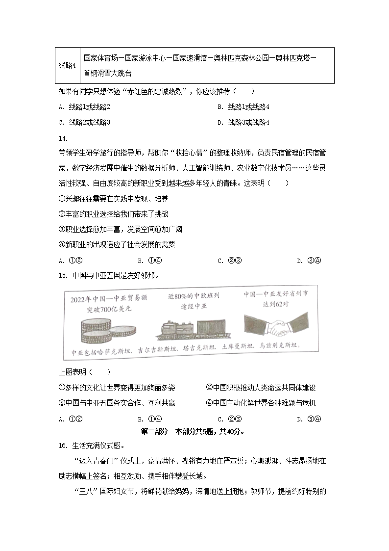 2023年北京东城中考道德与法治真题及答案(Word版)08-01