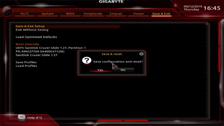 在此阶段,BIOS已更新。为此,请重新进入BIOS,选择“Save & Exit” 选项卡,然后选择“Load optimized defaults”。 它将要求您保存并重新启动,只需按yes