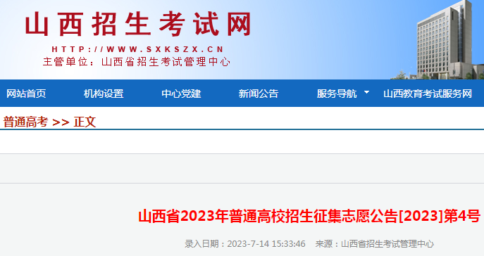 山西省2023年普通高校招生征集志愿公告[2023]第4号(征集志愿时间7月15日8:30截止)07-15