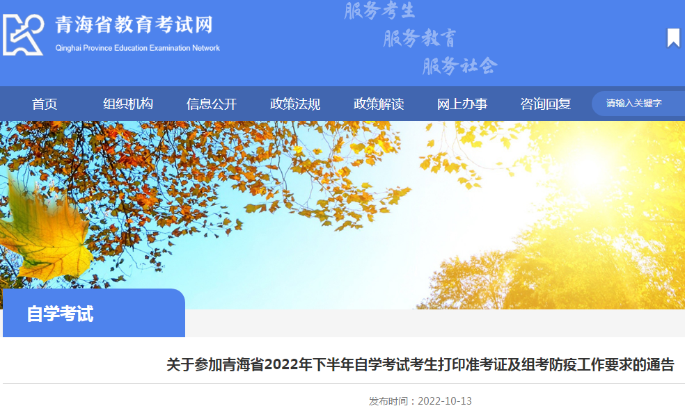 关于参加青海省2022年下半年自学考试考生打印准考证及组考防疫工作要求的通告10-14